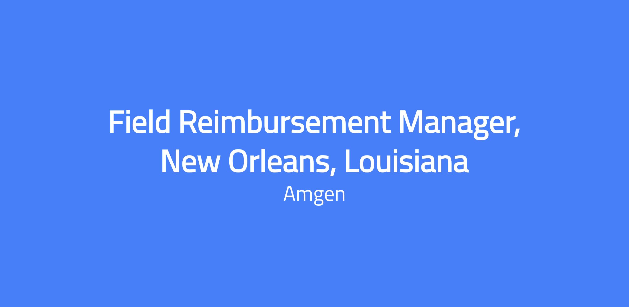 Location: New Orleans, Louisiana. The Field Reimbursement Manager will manage defined accounts within a geographic region for Patient Access and Reimbursement. They will support products by executing the territory strategic plan, ensure understanding of the reimbursement process, field reimbursement services, and patient support programs, and work on patient-level reimbursement issue resolution, requiring knowledge of patient health information (PHI).