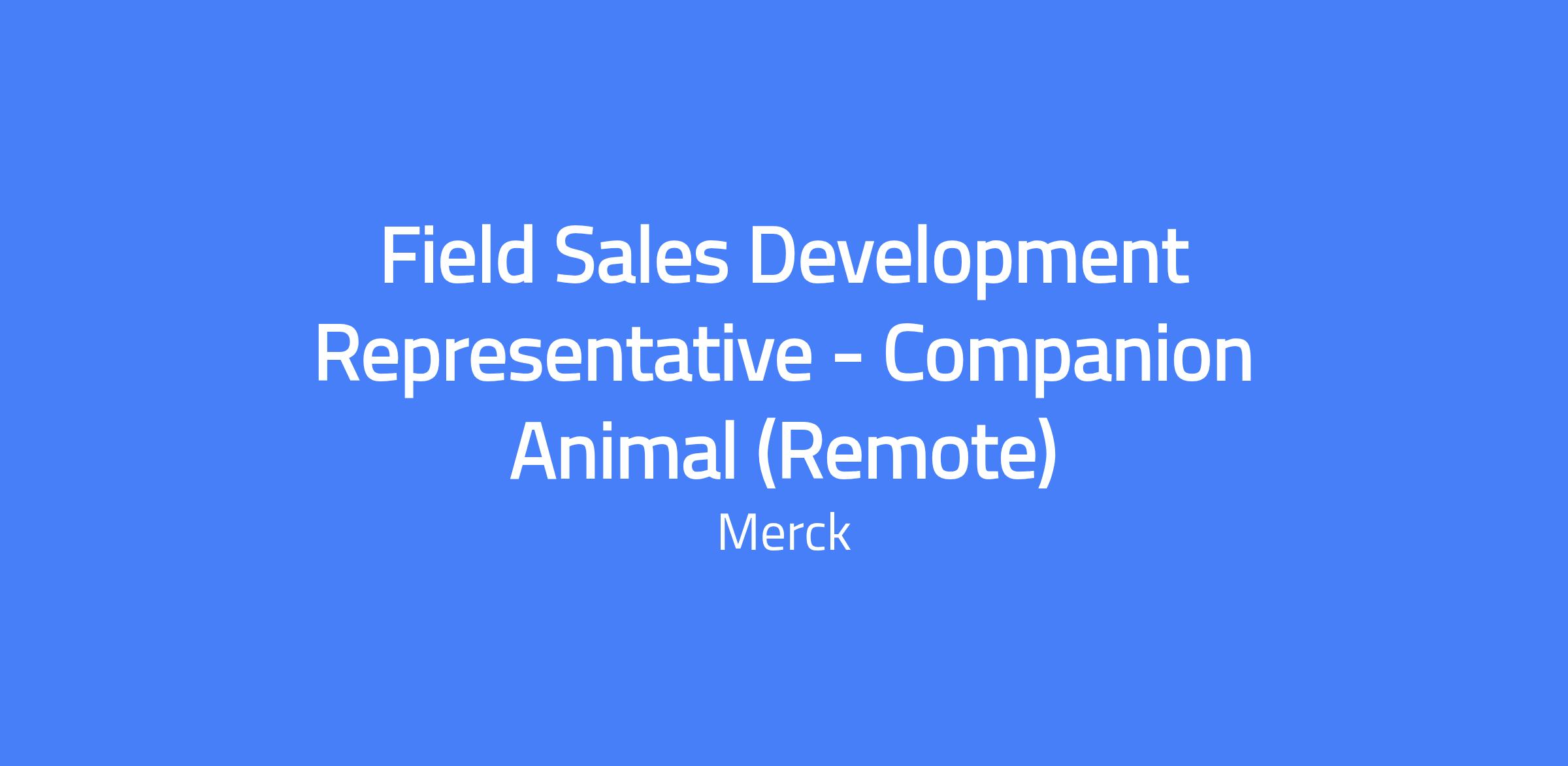 Field Sales Development Representative – Companion Animal (Remote). Our Field Sales Development Representatives engage face-to-face and virtually with customers, quickly build relationships, understand their needs, and consult to offer the right solutions. Working with the Companion Animal Field Sales Team, this role supports our customer-centric business model. The Field Sales Development Representative will focus on selling companion animal products within vacant territories across the United States, temporarily residing in the territory and moving from territory to territory as business needs arise.