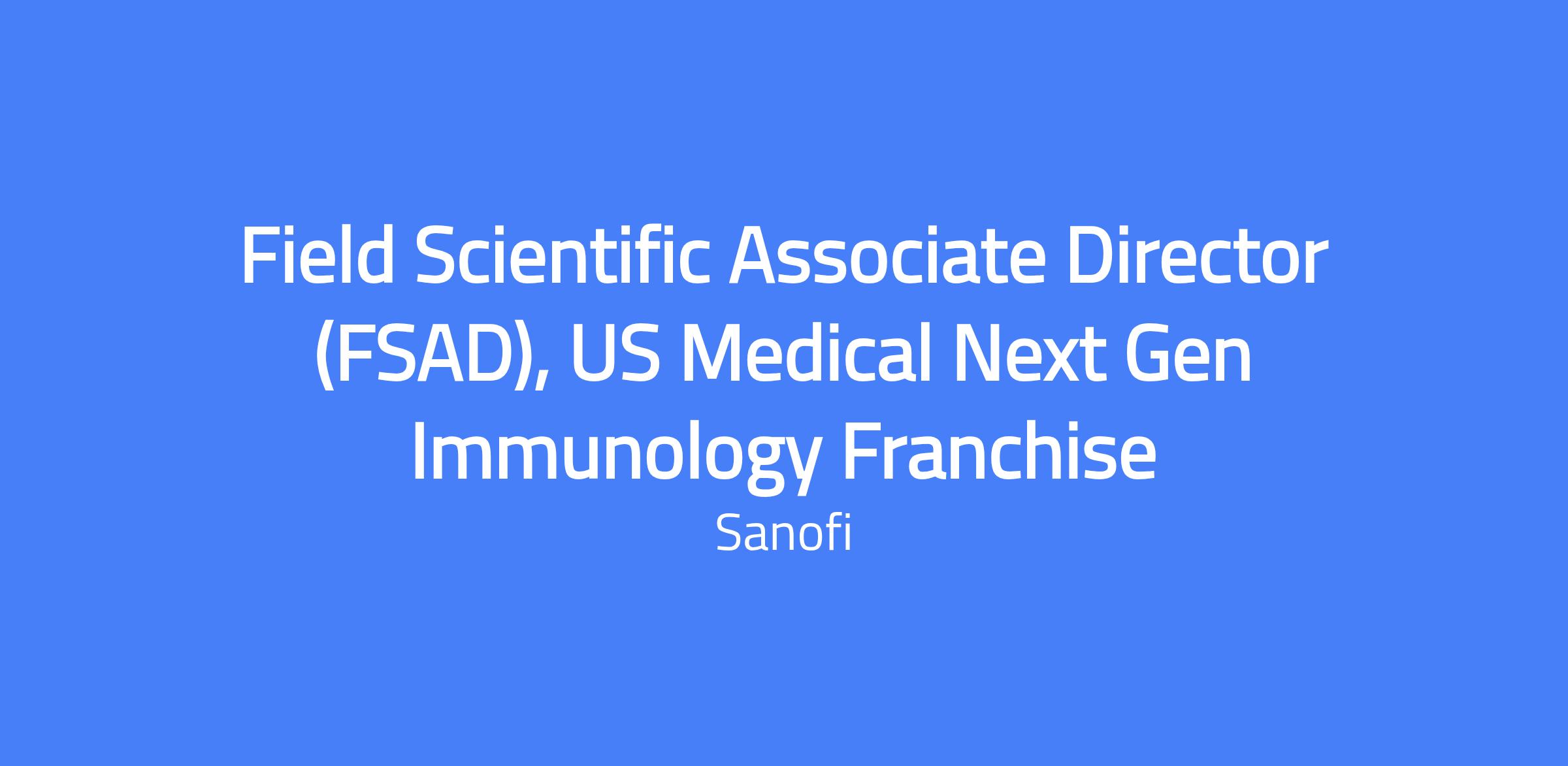 Field Scientific Associate Director (FSAD), US Medical Next Gen Immunology Franchise