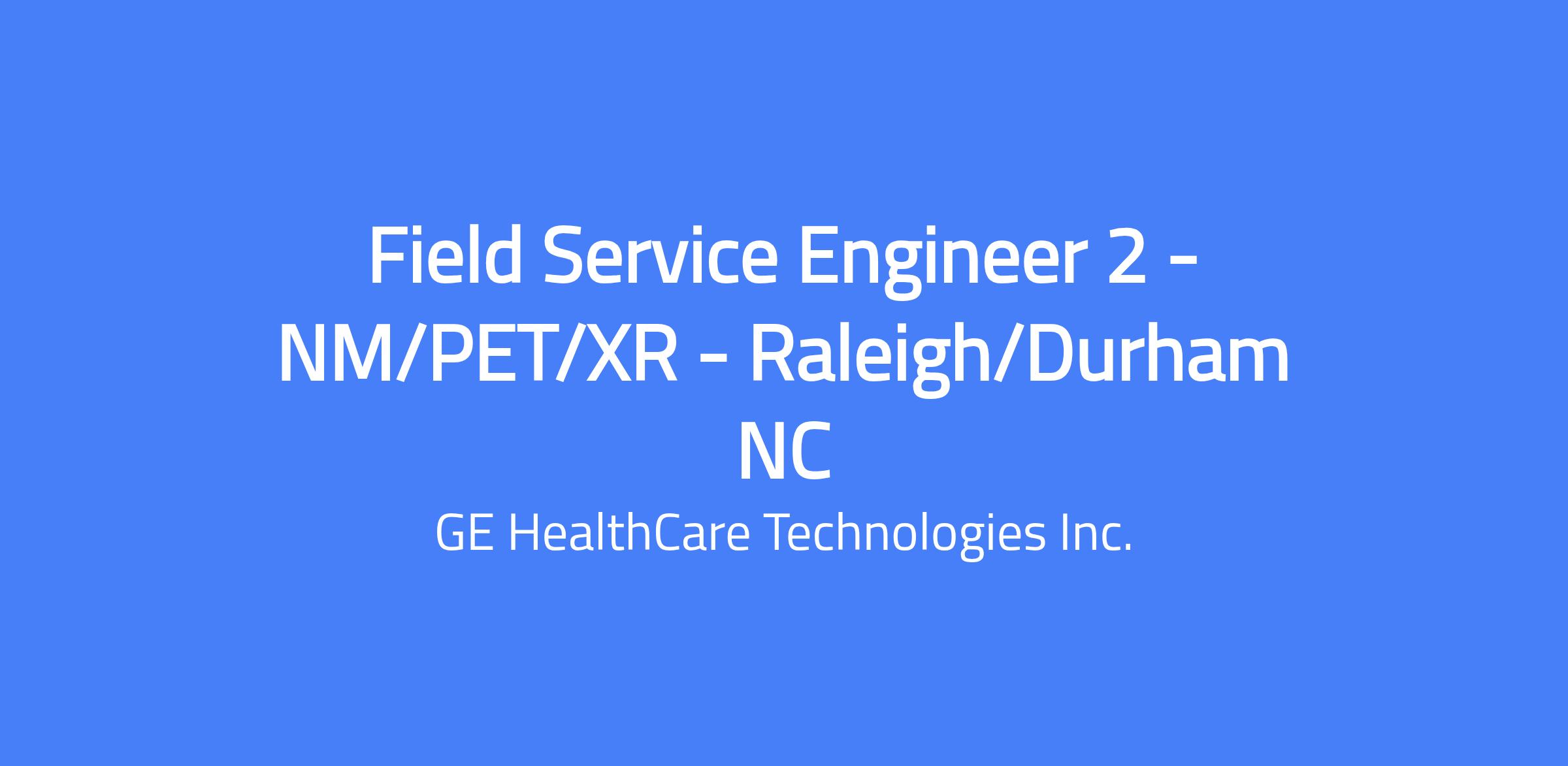 Job Description Summary The Field Engineer 2 performs on time and accurate Preventative Maintenance in one or more modalities of equipment. The FE2 is aware of and follows all Field Modification Instructions and/or Instrument Service Information bulletins. Works with experienced Field Engineers, both onsite and remotely, to learn troubleshooting, repair and equipment installation techniques. Responsible for driving customer satisfaction through Service Excellence. This job is located in Raleigh/Durham, NC Relocation is available GE HealthCare is a leading global medical technology and digital solutions innovator. Our mission is to improve lives in the moments that matter. Unlock your ambition, turn ideas into world-changing realities, and join an organization where every voice makes a difference, and every difference builds a healthier world.  Job Description This job is located in Raleigh/Durham, NC Relocation is available. Responsibilities : Learn to complete on-time and accurate Preventative Maintenance, FMIs and/or ISIs. Assist more experienced field engineers with equipment installation. Work with experienced field engineers on basic troubleshooting and service repair needs on designated equipment. Effectively communicate and partner with teammates and colleagues. Learn to effectively communicate with customers to ensure resolution and proper follow-up, leading to customer satisfaction. Partner with the customer and recommend value-added services that will help the customer run their business more efficiently. Keep up to date on administrative responsibilities such as maintaining customer service logs and internal service records in a timely manner, ordering repair parts, and managing cycle times. Utilize the GEHC escalation process, as needed, and work closely with region and national support to define and implement corrective action plans to resolve customer issues in a timely manner. Serve as a member of the account community for key accounts. Effectively engage commercial counterparts, identify potential sales leads, participate in sales opportunities such as contract renewals, and assist with promoting and implementing revenue programs. Focus on customer needs and satisfaction, while building on and enhancing the relationship with the customer to ultimately become a perceived partner in their business. Keep up to date with competitor information and market trends. Answer service calls independently without assistance within one year of employment Qualifications : Associate's or Bachelor's degree in Electrical Engineering, Biomedical Engineering, Mechanical Engineering, or related field OR equivalent military education; OR participant in the formal GEHC Biomed/FE Services Internship or Military Externship program; OR High School Diploma/GED and 4 or more years of experience servicing electronic equipment. Experience with Web applications as well as Microsoft suite of products. The successful applicant must comply with GEHC's standard background check, including a post-offer drug test. In addition, during employment, the employee must comply with all customer access policies, including but not limited to obtaining and/or providing proof of required immunizations, and additional drug tests or background checks (including a federal government background check if assigned to support a contract with the federal government). Legal authorization to work in the U.S. is required. We will not sponsor individuals for employment visas, now or in the future, for this job opening. Special Physical Requirements: Candidate must be able to lift, carry, push, and pull up to 35 lbs. unassisted and frequently bend, stoop, twist, climb, crouch/squat, kneel/crawl, sit and stand for long periods of time. Candidate must also be able to reach at, above and below shoulder level, flex/extend neck and have good hand and finger dexterity. Specific vision abilities required by this job may include color, close vision, distance vision, peripheral vision and depth perception. Must have and maintain a valid Driver's License. Willingness to be available ""after hours"", or work a rotating On-Call schedule, including weekends, for critical issues and coverage, as necessary. We expect all employees to live and breathe our behaviors: to act with humility and build trust; lead with transparency; deliver with focus, and drive ownership –always with unyielding integrity. Our total rewards are designed to unlock your ambition by giving you the boost and flexibility you need to turn your ideas into world-changing realities. Our salary and benefits are everything you’d expect from an organization with global strength and scale, and you’ll be surrounded by career opportunities in a culture that fosters care, collaboration and support. #LI-KG1 #LI-remote #LI-RAL We will not sponsor individuals for employment visas, now or in the future, for this job opening. This role is restricted to U.S. persons (i.e., U.S. citizens, permanent residents, and other protected individuals under the Immigration and Naturalization Act, 8 U.S.C. 1324b(a)(3)) due to access to export-controlled technology. GE HealthCare will require proof of status prior to employment. Additional Information GE HealthCare offers a great work environment, professional development, challenging careers, and competitive compensation. GE HealthCare is an Equal Opportunity Employer. Employment decisions are made without regard to race, color, religion, national or ethnic origin, sex, sexual orientation, gender identity or expression, age, disability, protected veteran status or other characteristics protected by law. GE HealthCare will only employ those who are legally authorized to work in the United States for this opening. Any offer of employment is conditioned upon the successful completion of a drug screen (as applicable). While GE HealthCare does not currently require U.S. employees to be vaccinated against COVID-19, some GE HealthCare customers have vac
