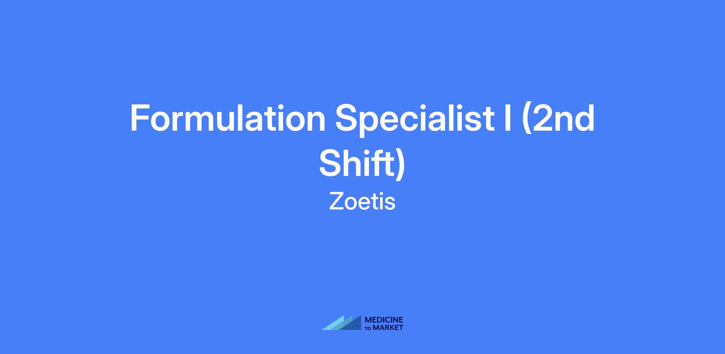 Formulation Specialist - Aseptic (2nd Shift) at Zoetis. Performs assembly, preparation, and cleaning of manufacturing equipment and conducts manufacturing processes for animal health products in the formulation area. Requires attention to detail, teamwork, and adherence to SOPs and regulatory standards in a lean manufacturing environment.