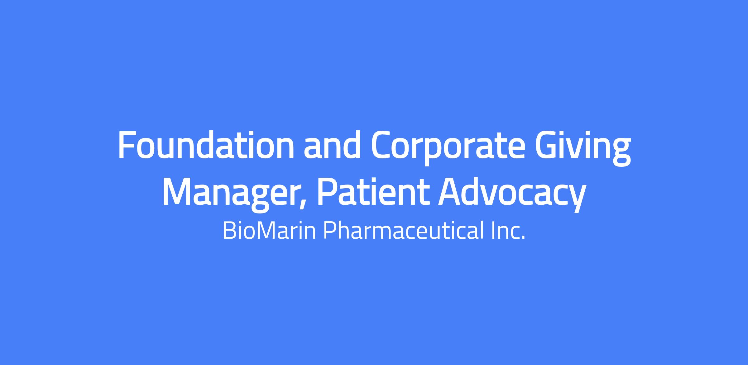- Responsible for the overall portfolio of grants and sponsorships for BioMarin’s Corporate Affairs function.