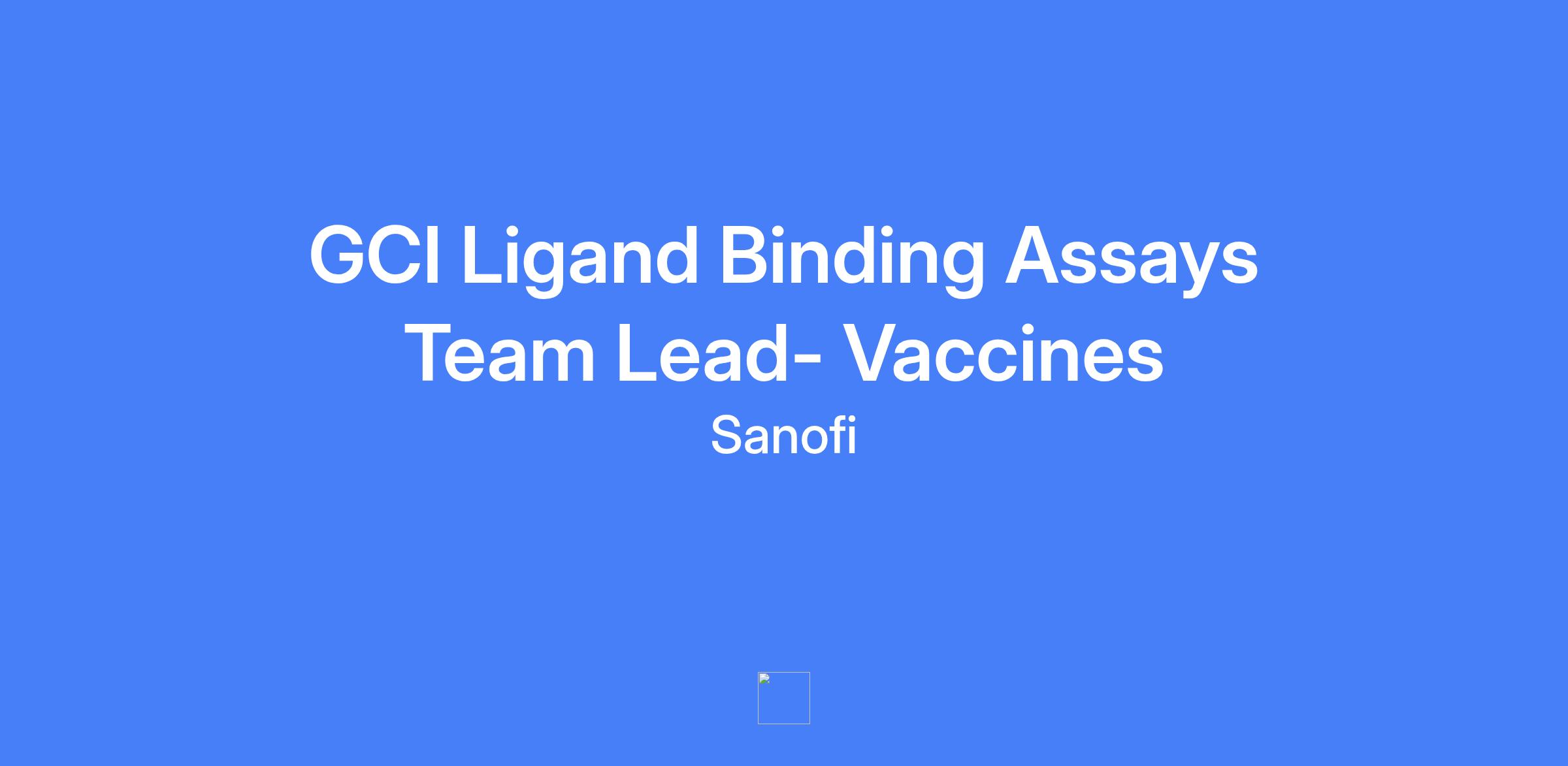 GCI Ligand Binding Assays Team Lead- Vaccines. Location: Swiftwater, PA.