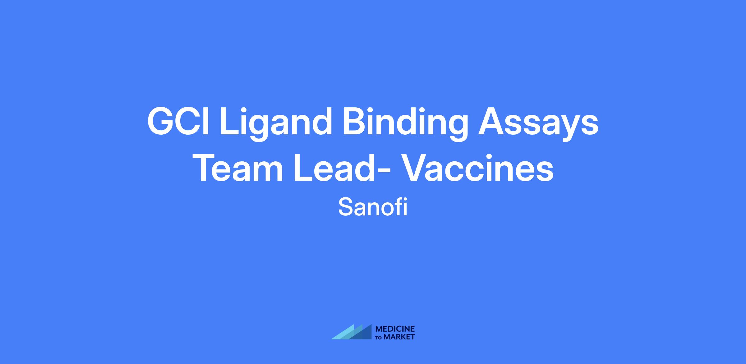 GCI Ligand Binding Assays Team Lead- Vaccines. Location: Swiftwater, PA.