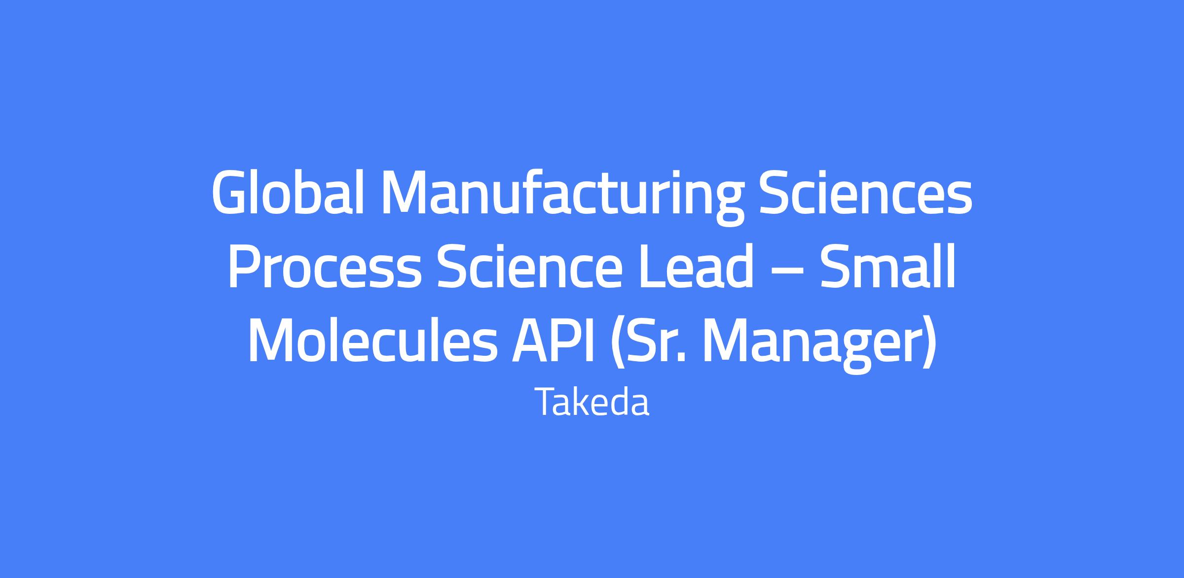 Global Manufacturing Sciences Process Science Lead β Small Molecules API (Sr. Manager) is a senior individual contributor role serving as the subject matter expert and primary technical contact for Takedaβs small molecule API manufacturing across the product lifecycle. You will define phase-appropriate, fit-for-purpose manufacturing strategies to support process design, scale-up, technology transfer, and commercial supply, working cross-functionally to provide evidence-based technical recommendations and influence decisions that strengthen manufacturing robustness and supply continuity. You will represent Small Molecule Drug Substance in forums with regulatory, quality, analytical services, supply chain, R&D, and leadership as needed. Location: Boston, MA.