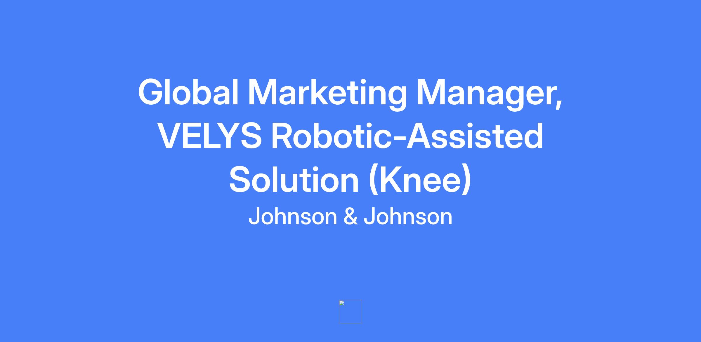 Global Marketing Manager, VELYS Robotic-Assisted Solution (Knee)