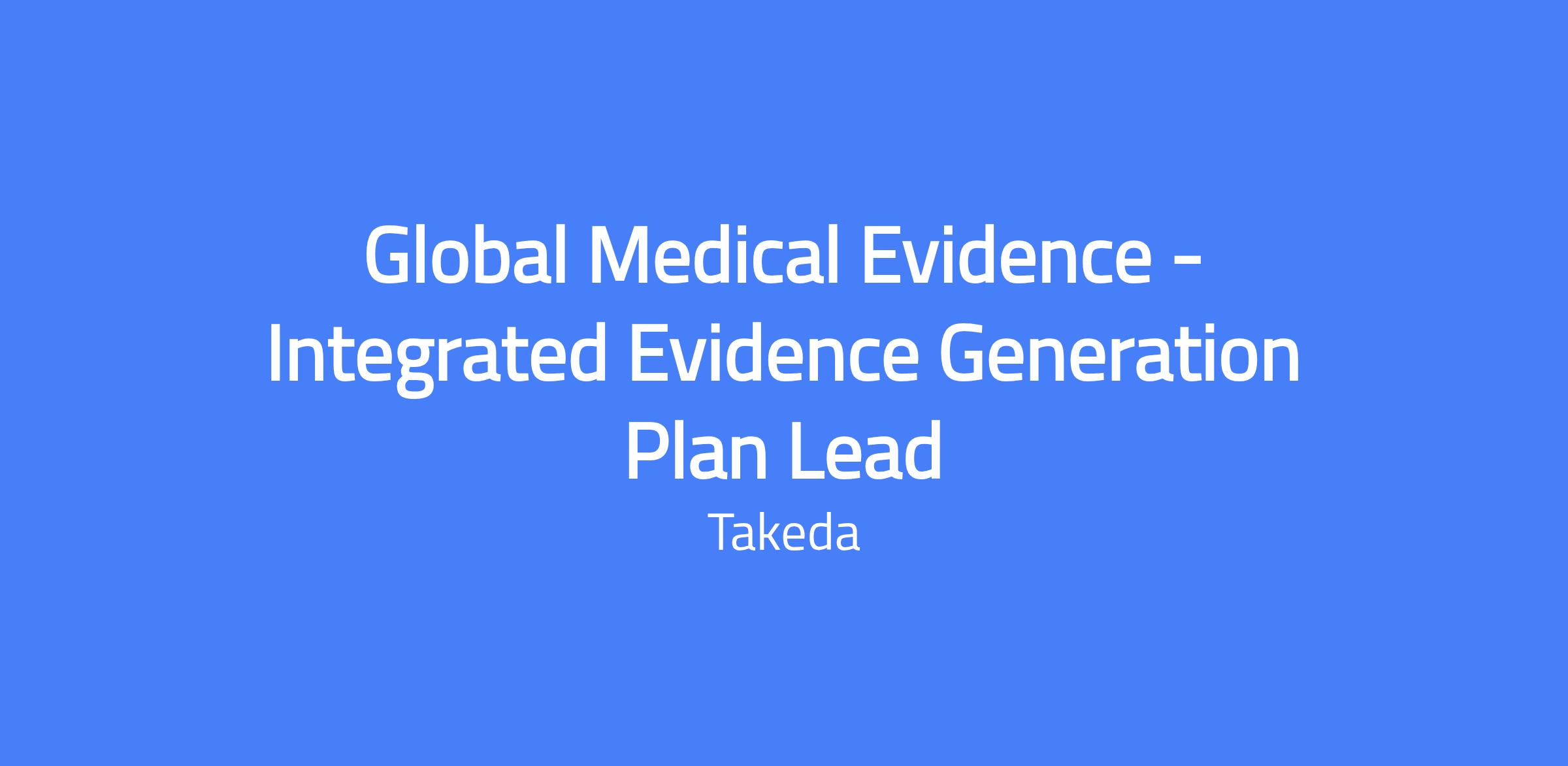 Global Medical Evidence - Integrated Evidence Generation Plan Lead