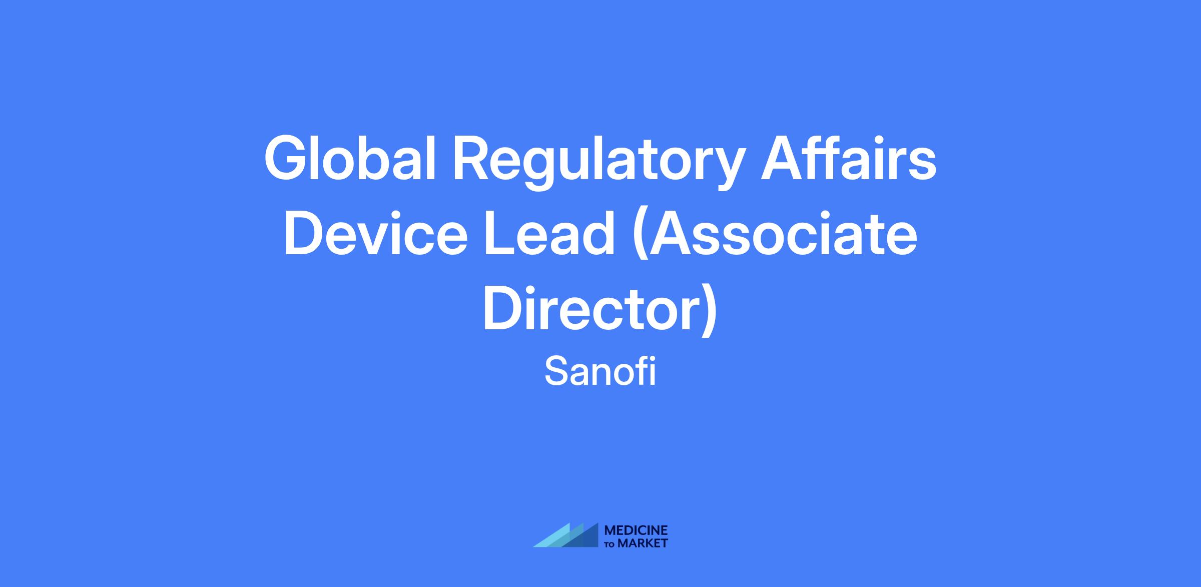 Global Regulatory Affairs Device Lead (Associate Director) at Sanofi. Location: Morristown, NJ or Cambridge, MA or Framingham, MA. Drive global regulatory strategies for medical device and combination products, collaborate with cross-functional teams, and influence product approvals through negotiations with health authorities worldwide.