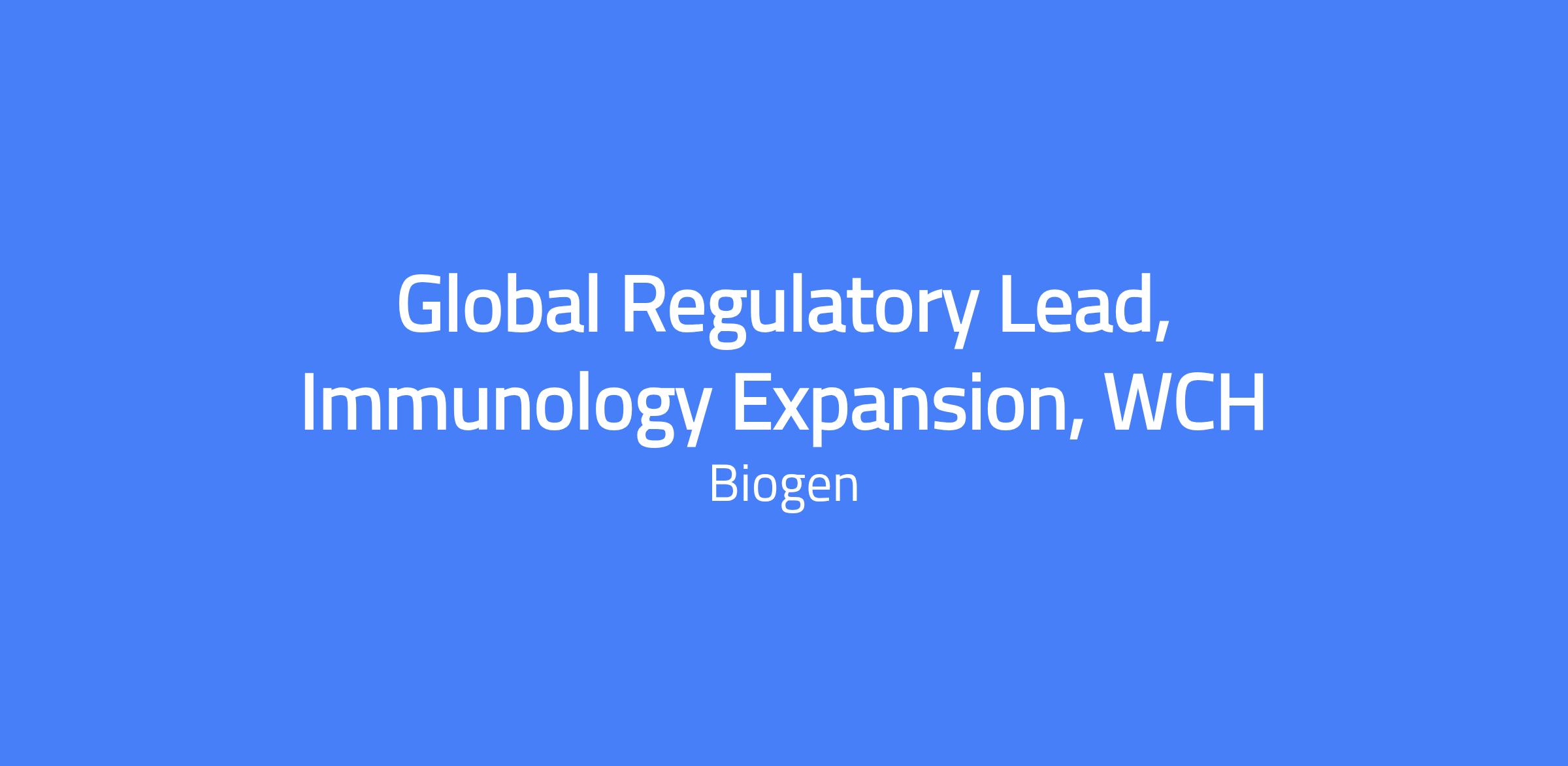 Global Regulatory Lead, Immunology Expansion, WCH