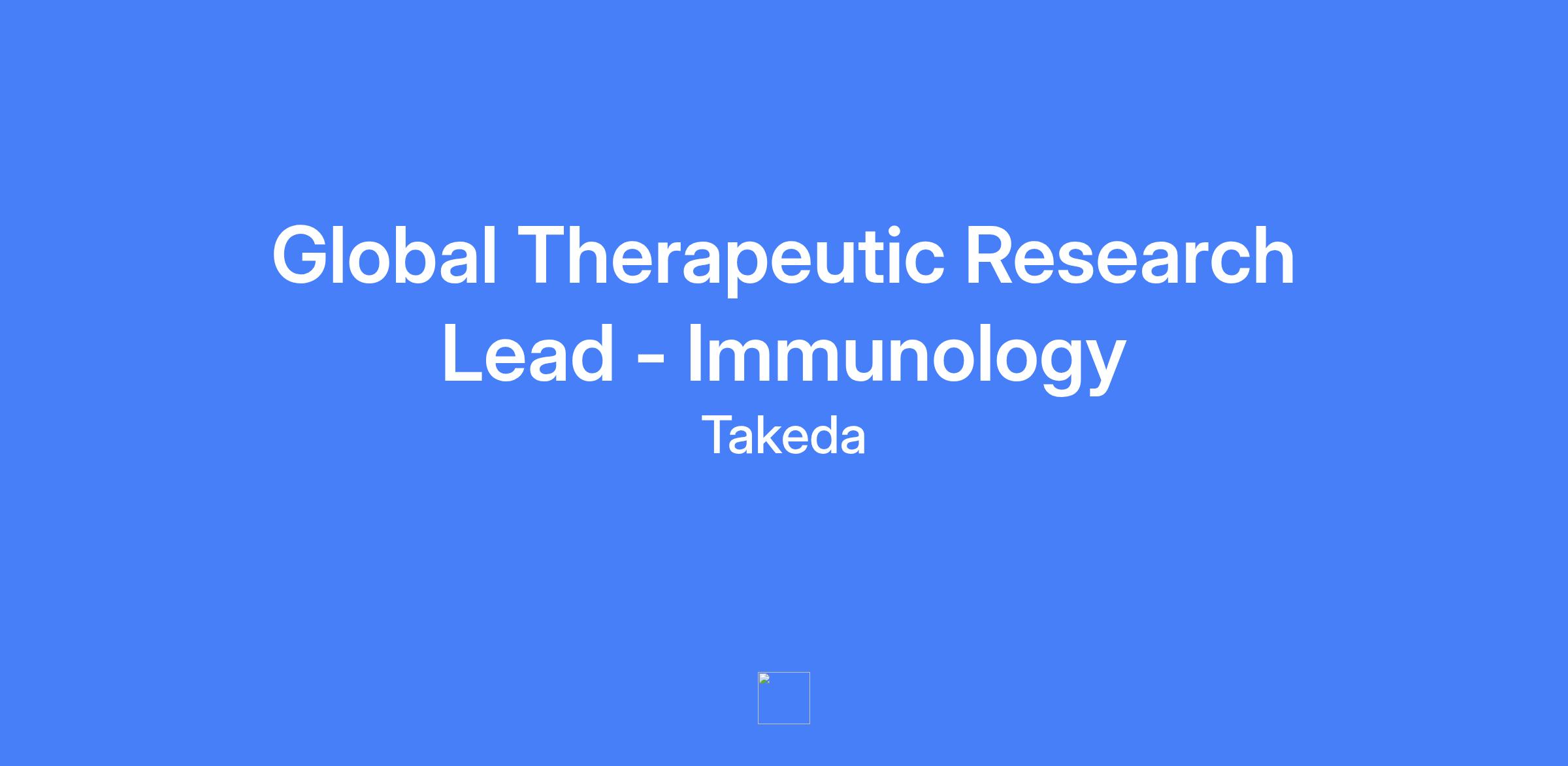 Global Therapeutic Research Lead (Immunology) at Takeda. Lead top discovery projects to the clinic within the Gastroenterology and Inflammation Drug Discovery Unit, mentor global research teams, shape asset strategy, manage external partnerships, and represent core expertise across stakeholders and governance forums.