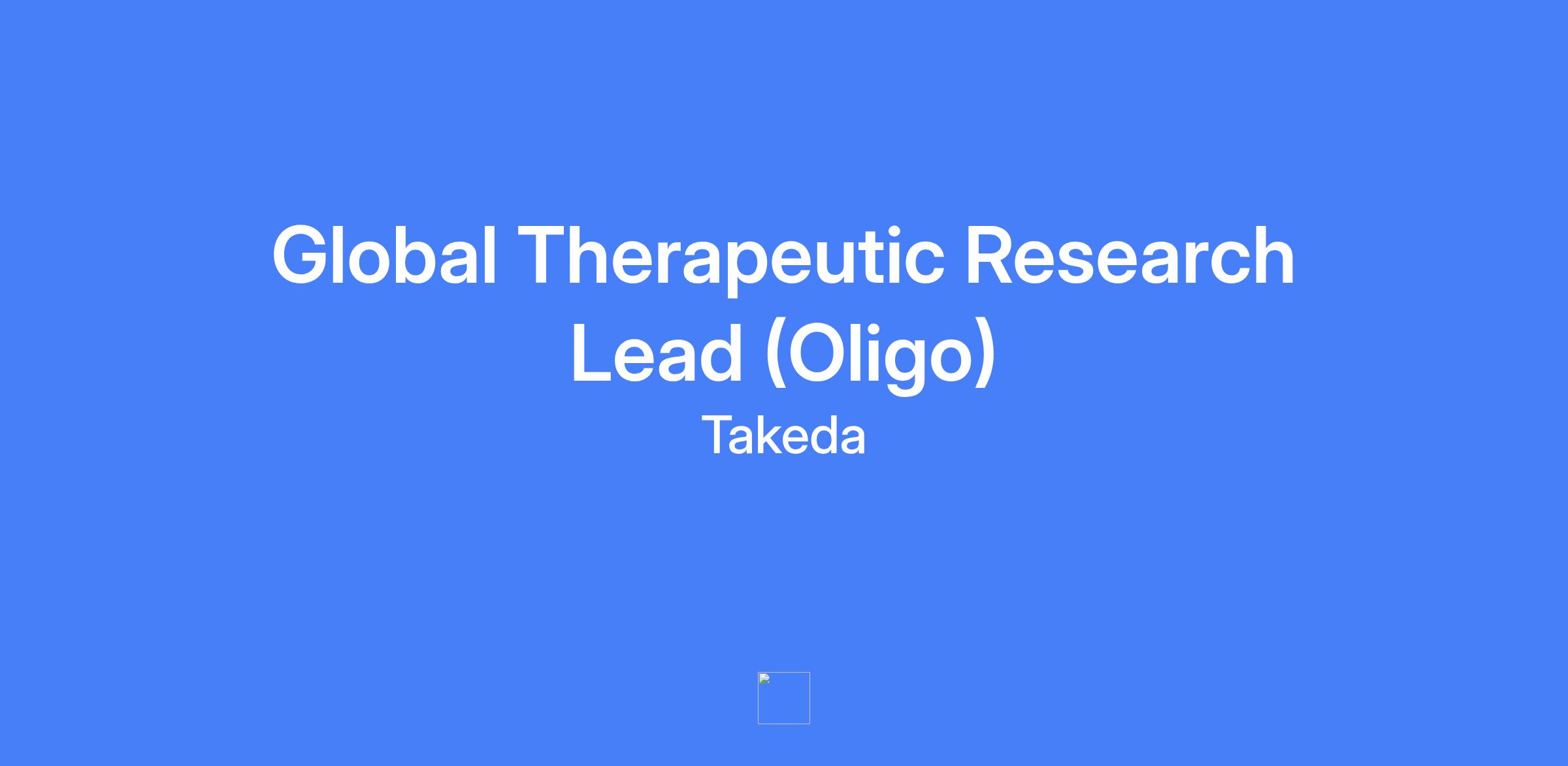 Global Therapeutic Research Lead (Oligo) responsible for driving Research projects to the clinic within the Neuroscience Drug Discovery Unit, leading top priority oligonucleotide programs, and mentoring global drug discovery talent.