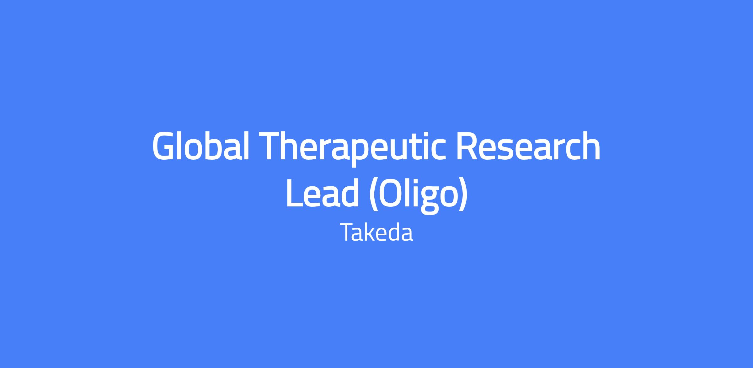 The Global Therapeutic Research Lead (Oligo) drives Research projects to the clinic as a pipeline-critical strategic leader within the Neuroscience Drug Discovery Unit. The role leads top priority oligonucleotide programs with strong clinical and commercial potential, mentors global discovery teams, and builds an integrated view of asset strategy across Research, Clinical Development, and Commercial stakeholders. This position represents core expertise, oversees external partnerships, and fosters innovation and high-quality IND delivery. Location: Kanagawa, Fujisawa, Japan.