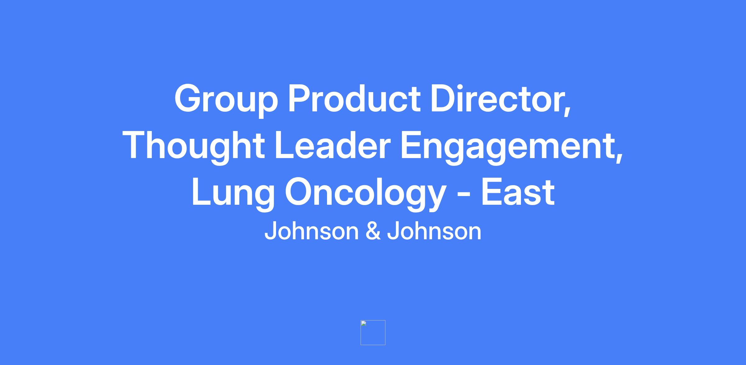 Johnson & Johnson is recruiting for Group Product Director, Thought Leader Engagement, Lung Oncology. This is a field based position supporting the East region with significant travel to customers and the home office in Horsham, PA. This is a field-based role available within the United States. While specific cities are listed in the Locations section for reference, please note that they are examples only and do not limit your application. We invite candidates from any location to apply.