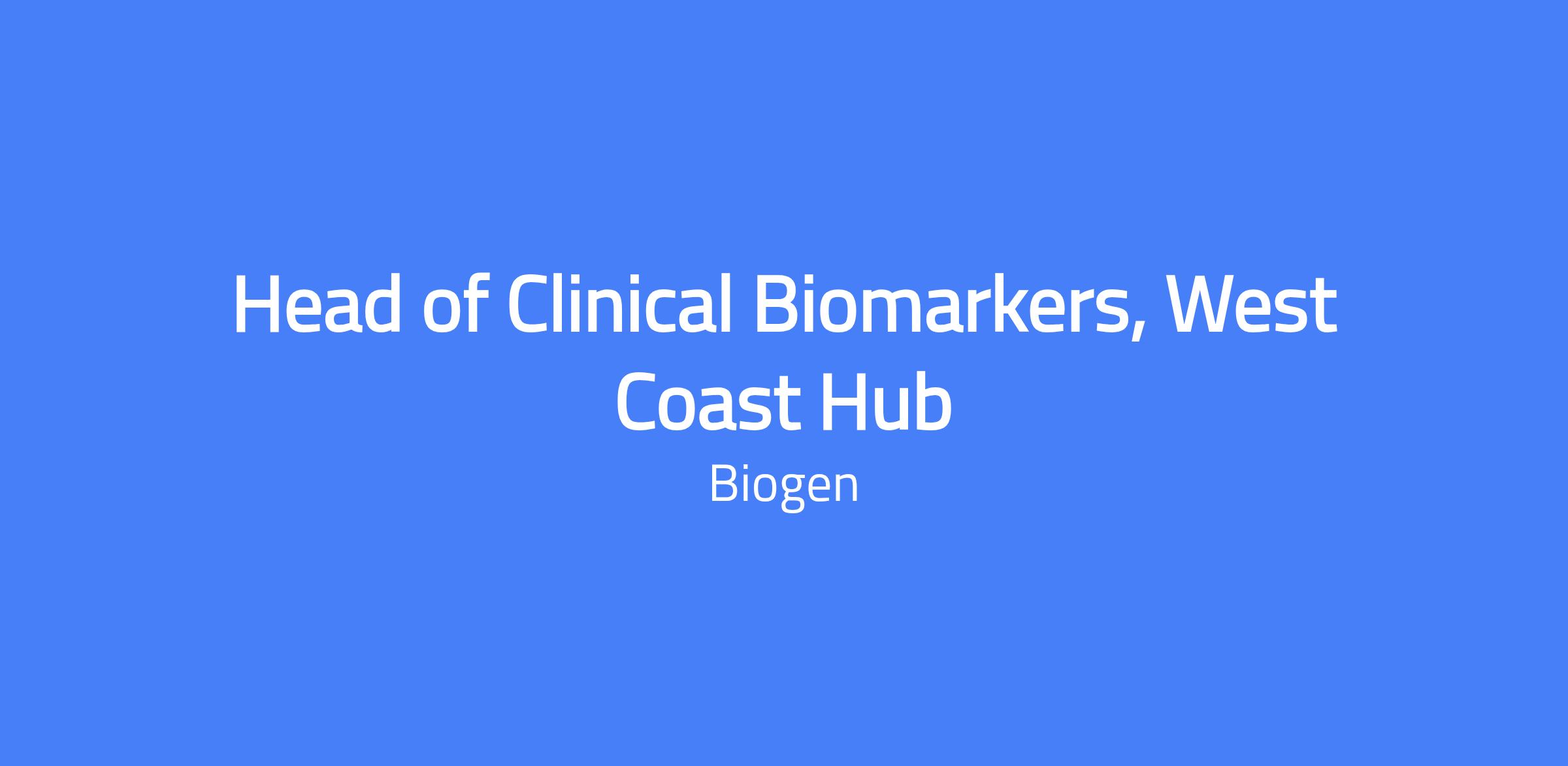 Head of Clinical Biomarkers, West Coast Hub (WCH) leads the Clinical Biomarkers function for a portfolio of investigational therapeutics spanning late-stage research, early development, and late/registrational clinical development. This senior leadership role sets strategic direction, oversees portfolio-wide advancement of the clinical biomarkers pillar, and manages a team of Biomarker and Bioanalytical scientists. Reports to the Head of Biomarkers and Clinical Pharmacology, WCH, and collaborates with Biogen Research, Development, and Commercial leaders.