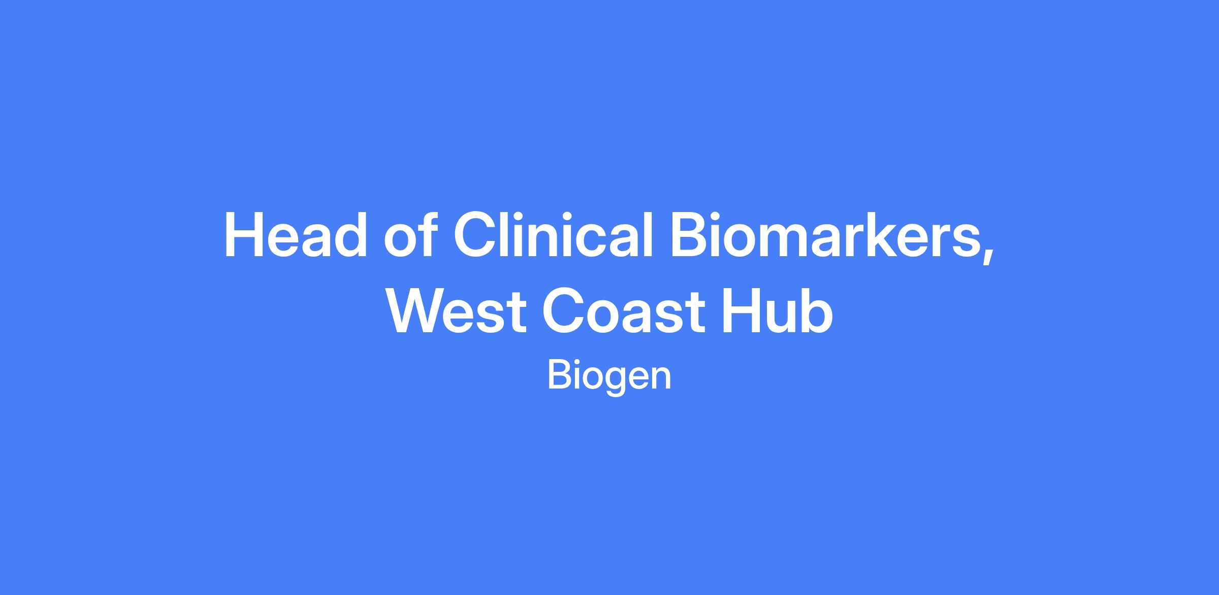 Head of Clinical Biomarkers, West Coast Hub (WCH) leads the Clinical Biomarkers function for a portfolio of investigational therapeutics spanning late-stage research, early development, and late/registrational clinical development. This senior leadership role sets strategic direction, oversees portfolio-wide advancement of the clinical biomarkers pillar, and manages a team of Biomarker and Bioanalytical scientists. Reports to the Head of Biomarkers and Clinical Pharmacology, WCH, and collaborates with Biogen Research, Development, and Commercial leaders.