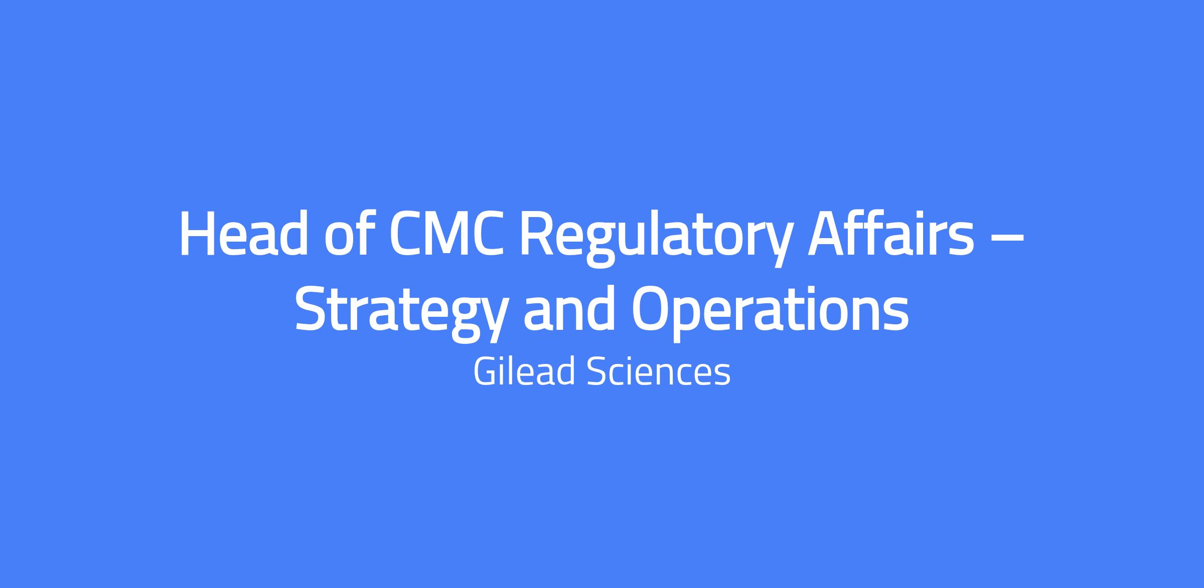 Head of CMC Regulatory Affairs โ€“ Strategy and Operations