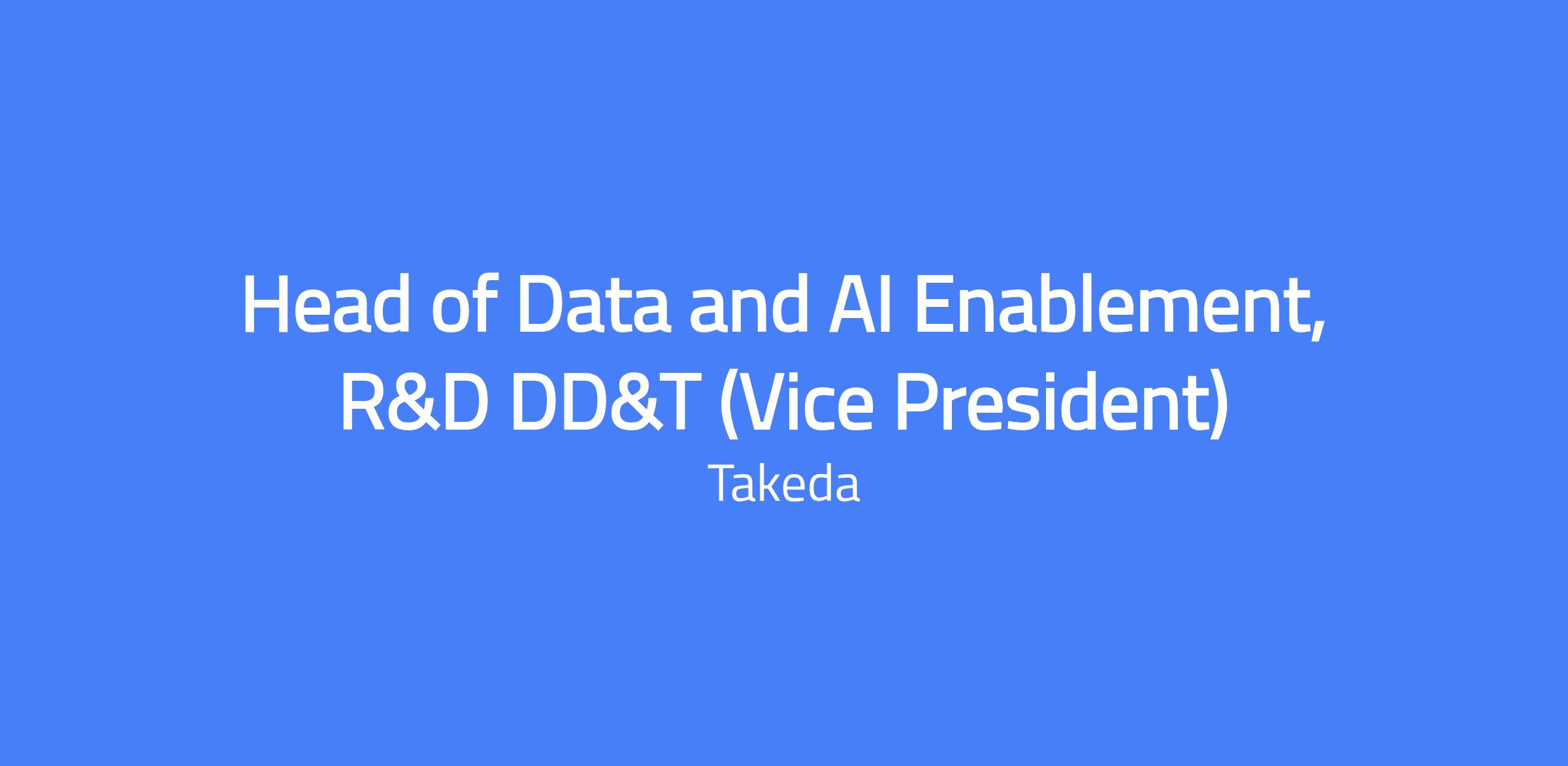 Vice President, Data & AI Enablement within R&D DD&T. This strategic executive will define and drive Takeda’s R&D DD&T AI and data strategy, focusing on transformative AI and digital technologies. The role leads as a partner to senior leaders across R&D, provides top-level technical leadership, and builds a high-performing team from the ground up, guiding digital and AI transformation to keep Takeda at the forefront of scientific innovation and operational excellence.