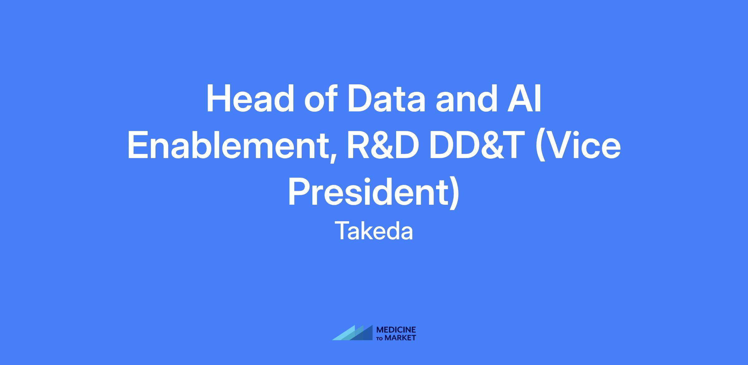Head of Data and AI Enablement, R&D DD&T (Vice President) at Takeda. Define and drive R&D DD&T AI and data strategy, lead transformative AI and digital technologies, and build a high-performing team to deliver impact at scale in a global, regulated pharmaceutical environment.
