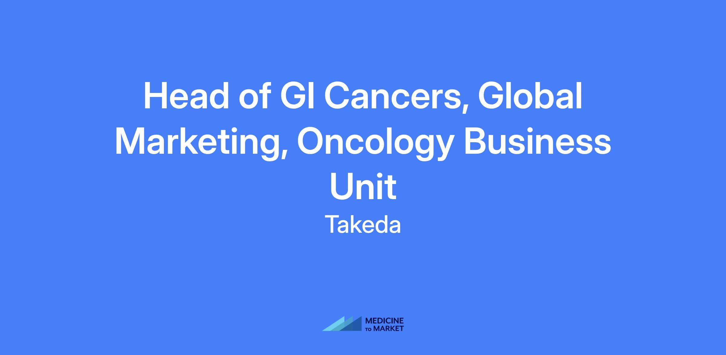 Head of GI Cancers, Global Marketing, Oncology Business Unit. Based in Boston, MA, this role leads the global GI oncology asset strategy within Takeda Oncology, reporting to the VP, Head of Global Marketing. You will collaborate with a cross-functional, global team to drive an asset in the GI cancer space, shape the GI Disease Area Strategy and Brand Plan, and lead a high-performing team to deliver launch readiness, lifecycle management, and revenue growth.