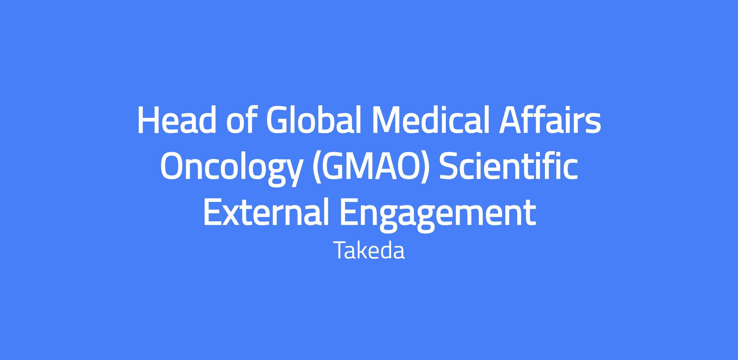The Director, Head of GMAO External Engagement will report to the Head of GMAO Medical Capabilities and will lead the strategic vision, integration, and execution of Takeda Oncology’s global external scientific engagement efforts. This role will oversee the GMAO external engagement team, ensuring a unified, cross-portfolio approach to scientific engagement across congresses, professional societies, and key opinion leaders (KOLs). As a senior leader within the GMAO Medical Capabilities team, this individual will drive alignment across Oncology cross-functions, regions and LOCs, and to elevate Takeda’s scientific presence and impact externally. Location: Boston, MA. Travel up to 35% international and domestic.