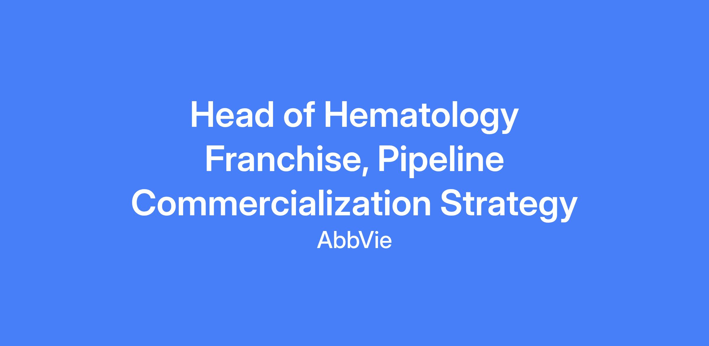 The Head of Hematology Franchise, Pipeline Commercialization Strategy is a senior leadership role reporting to the VP, PCS Oncology. The role acts as a thought partner to the leadership team and cross-functional partners, focusing on developing strategies and tactics to accelerate leadership in hematological malignancies and expand into adjacent areas. The position leads strategic value creation, portfolio prioritization, and commercialization planning across the hematology franchise and partners with commercial, medical, and development functions to maximize value for patients and AbbVie.