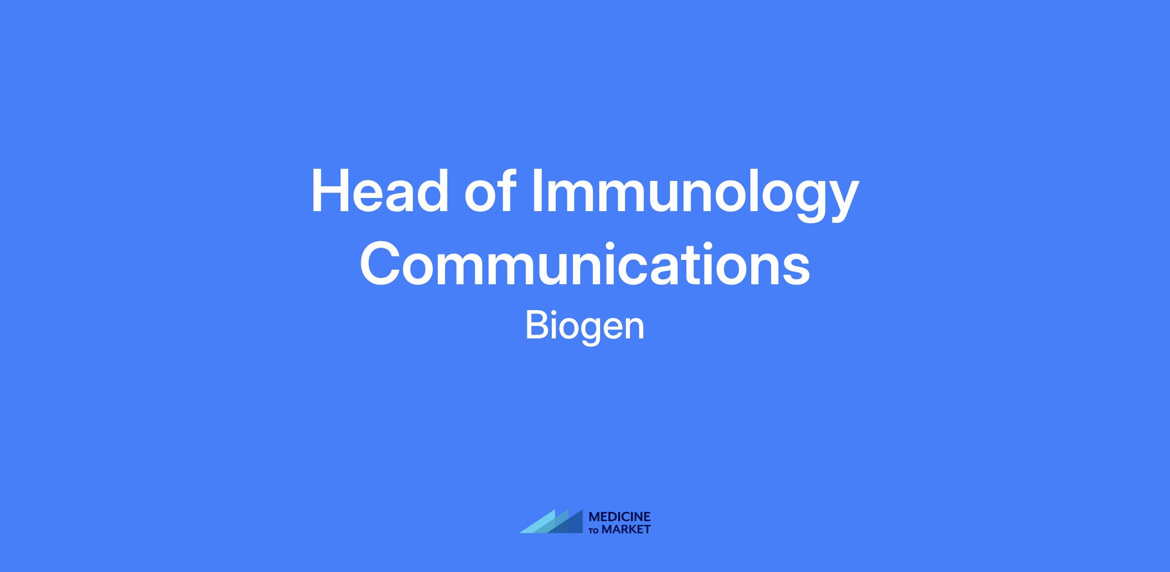 Head of Immunology Communications responsible for raising awareness of Biogen’s immunology presence and driving strategic product communications plans for the franchise, with a focus on lupus and oversight of additional immunology assets including nephrology.