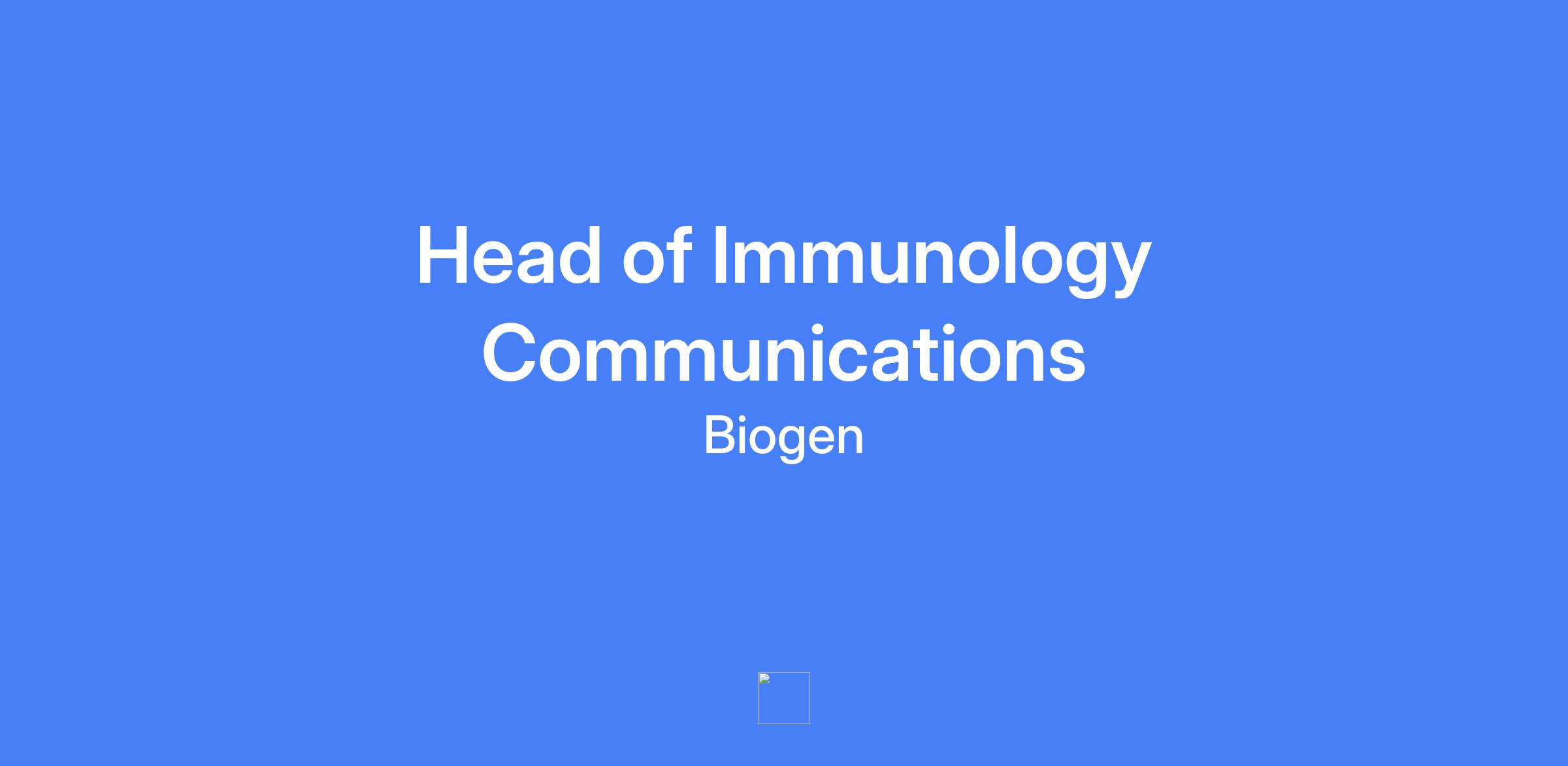 Head of Immunology Communications responsible for raising awareness of Biogen’s immunology presence and driving strategic product communications plans for the franchise, with a focus on lupus and oversight of additional immunology assets including nephrology.