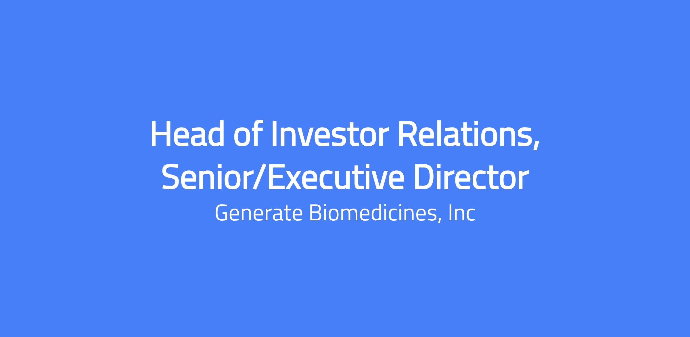 We are seeking a highly collaborative and hands-on Senior Director / Executive Director, Investor Relations to help build and scale our investor relations function as a newly public biotechnology company. This role will serve as a close partner to the CFO and work cross-functionally with Strategy, Corporate Communications, Legal, Finance, Technology and R&D to translate our science, pipeline strategy, wet lab capabilities, and machine learning technology into clear, credible, and consistent communications for investors and analysts.