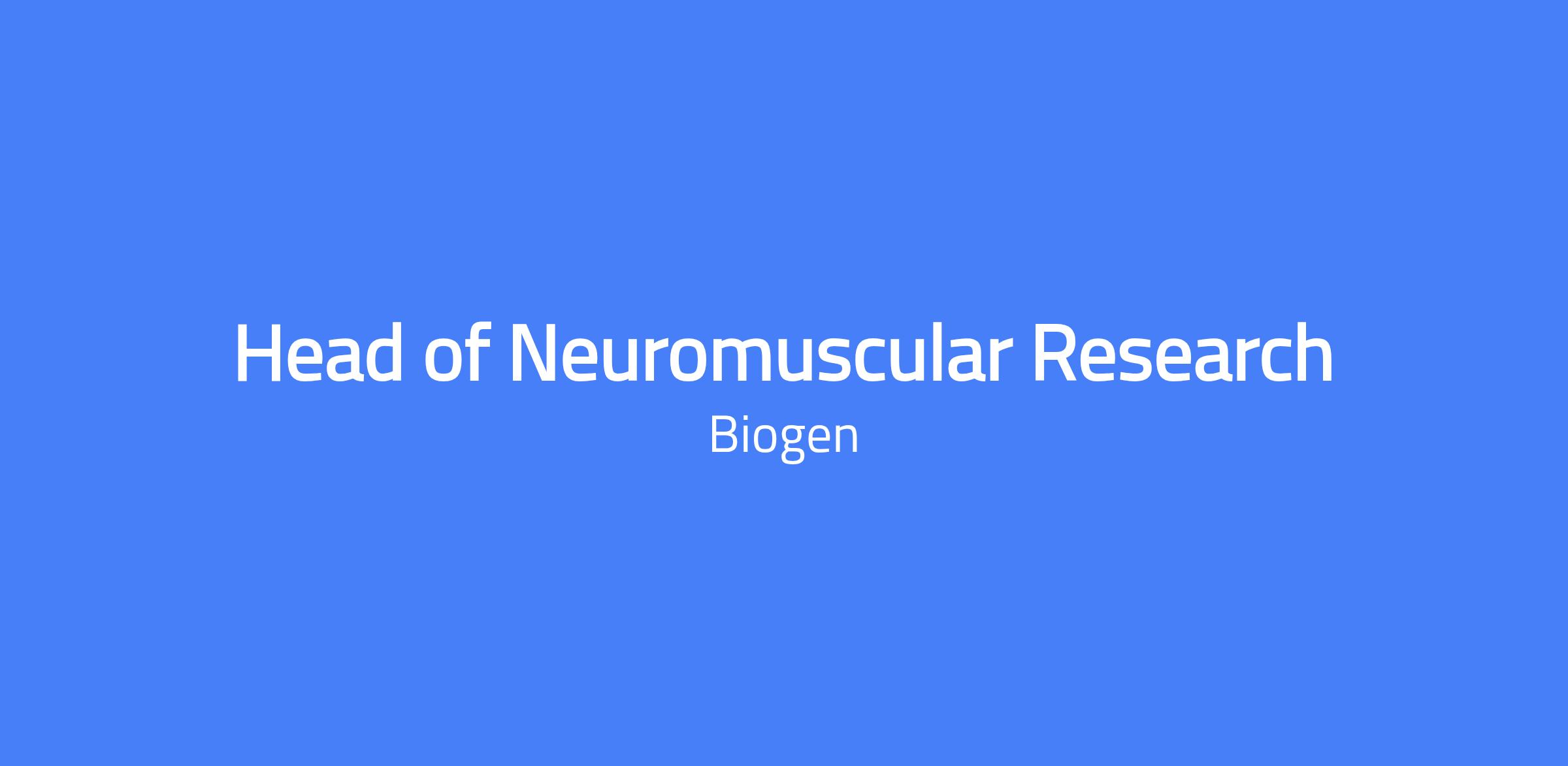 Head of Neuromuscular Research leading the strategy across established and emerging neuromuscular disease areas, including spinal muscular atrophy and amyotrophic lateral sclerosis. Responsible for maintaining momentum in existing programs while integrating external innovation and leading a team of scientists to deliver a high-value discovery pipeline.