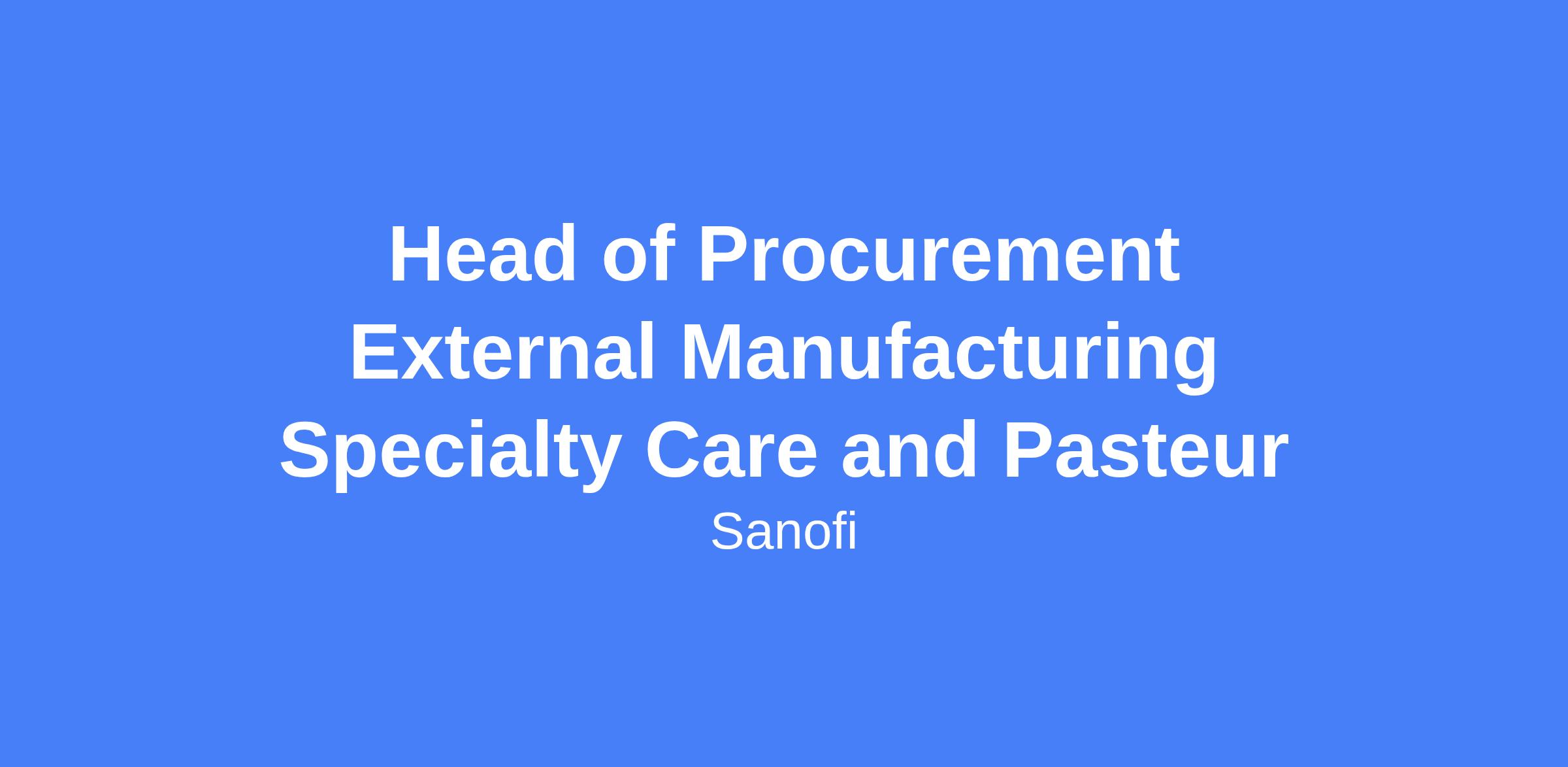 - Experience: 15+ years in senior management roles; proven global pharmaceutical/biotech procurement experience; demonstrated success in global positions; strong background in External Manufacturing and Supply Chain Management