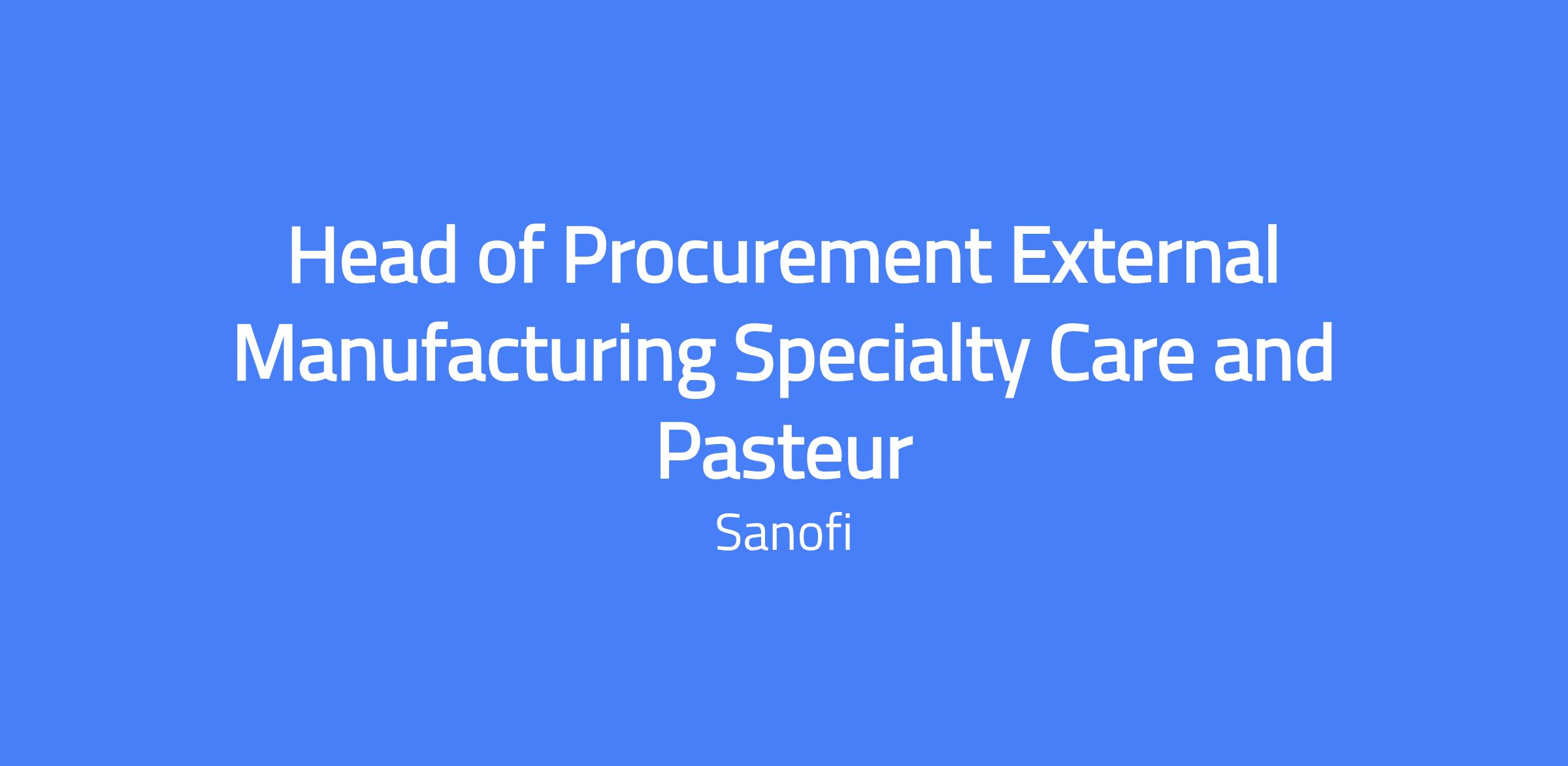 Head of Procurement External Manufacturing Specialty Care and Pasteur