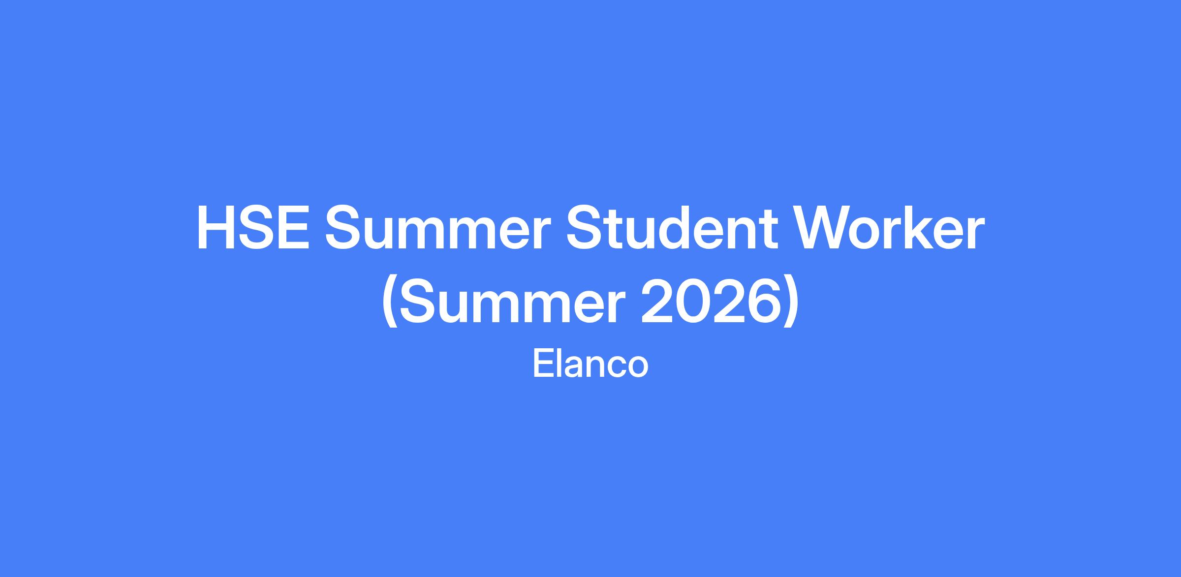 HSE Summer Student Worker (Summer 2026) at Clinton Labs. The role assists in the realization of an injury-free workplace by providing day-to-day safety-related support and coaching, and by participating in the design, implementation, and execution of plant safety and injury prevention initiatives. The position interfaces with individuals at all levels of the organization and lasts 12 weeks at 40 hours per week.
