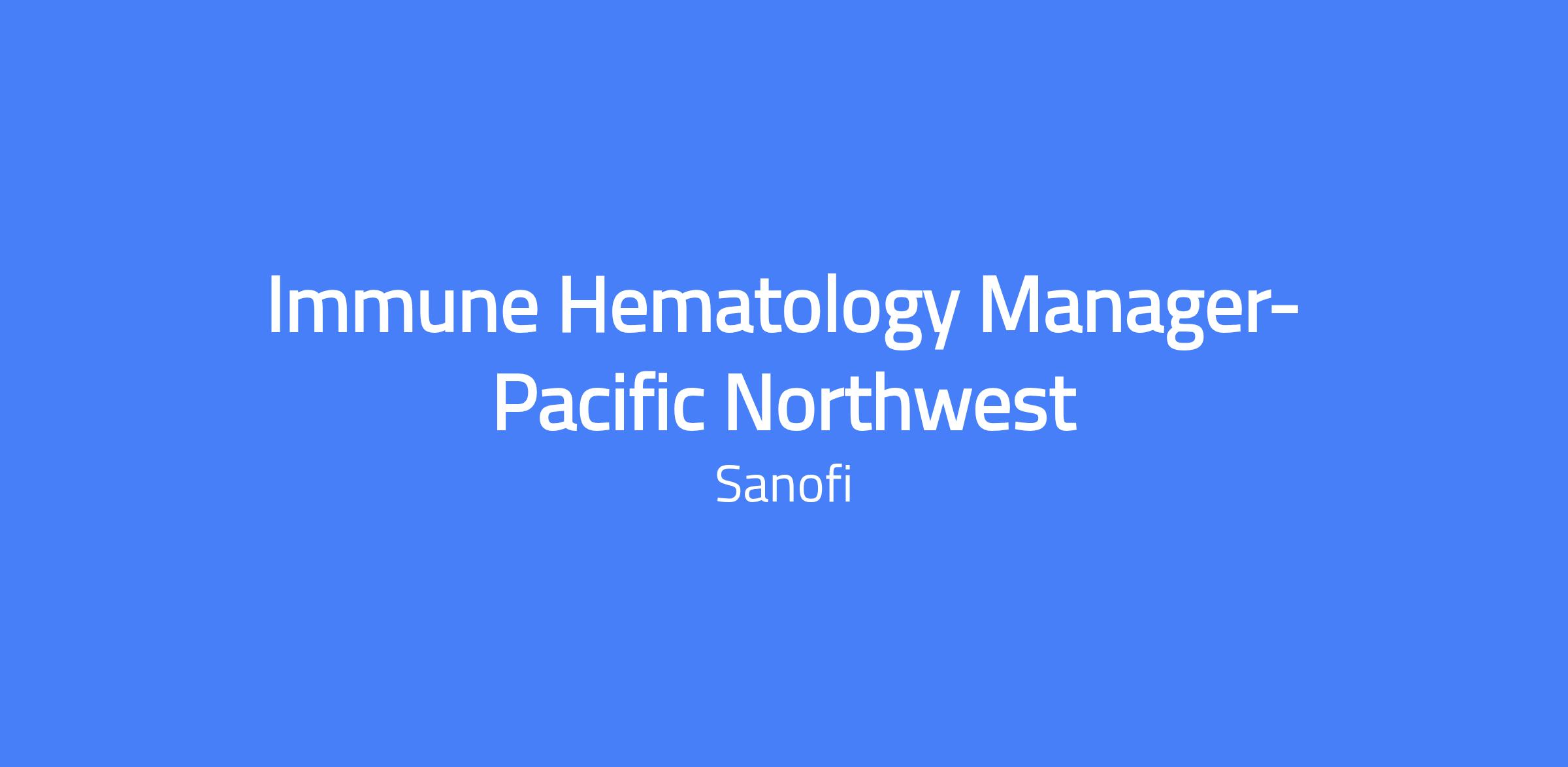 Immune Hematology Manager- Pacific Northwest