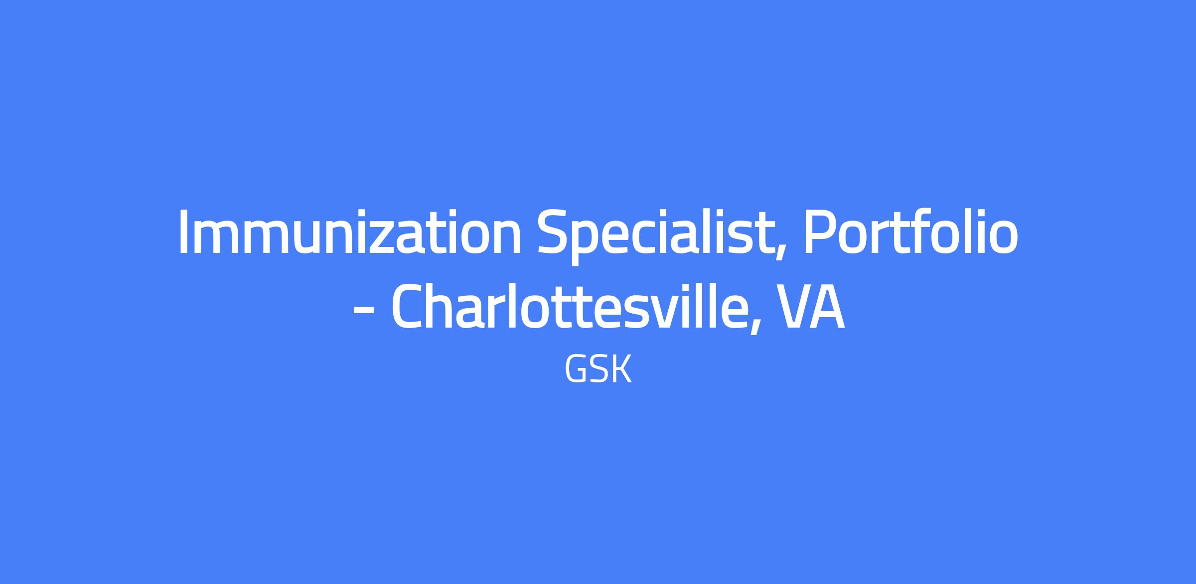 The Immunization Specialist, Portfolio is a field-based role focused on engaging healthcare providers to drive vaccine uptake across adult and pediatric customers. You will educate HCPs and their staff on disease prevention and GSK’s vaccine portfolio, translating clinical data into conversations that support vaccination goals. This position requires strong customer engagement, scientific fluency, and collaboration with cross-functional teams to ensure compliant execution. Location: Charlottesville, VA; travel as needed based on customer location.
