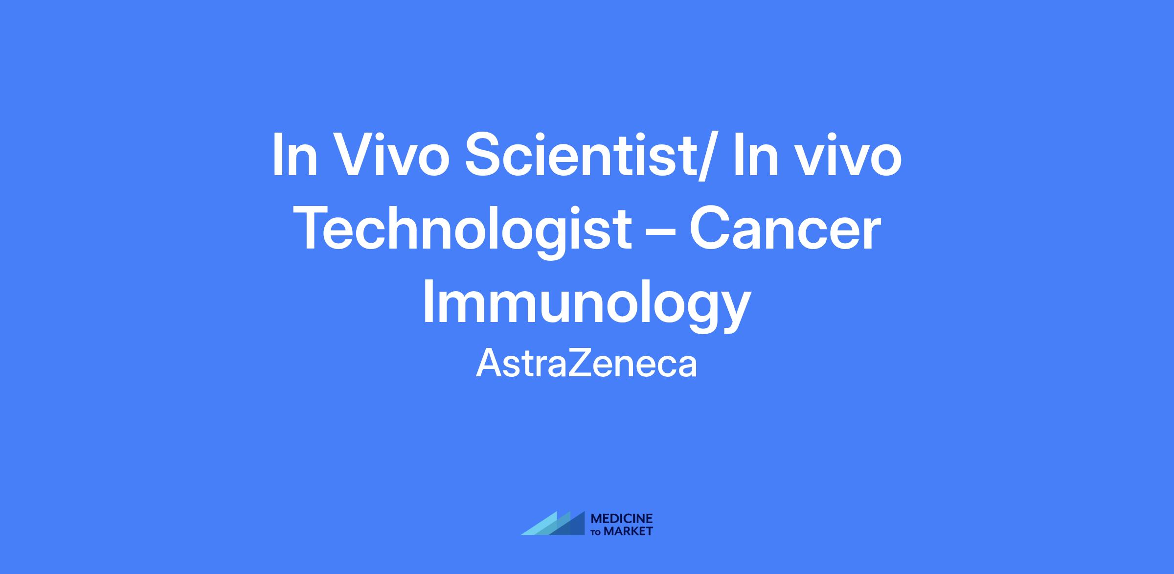 In Vivo Scientist/ In vivo Technologist – Cancer Immunology