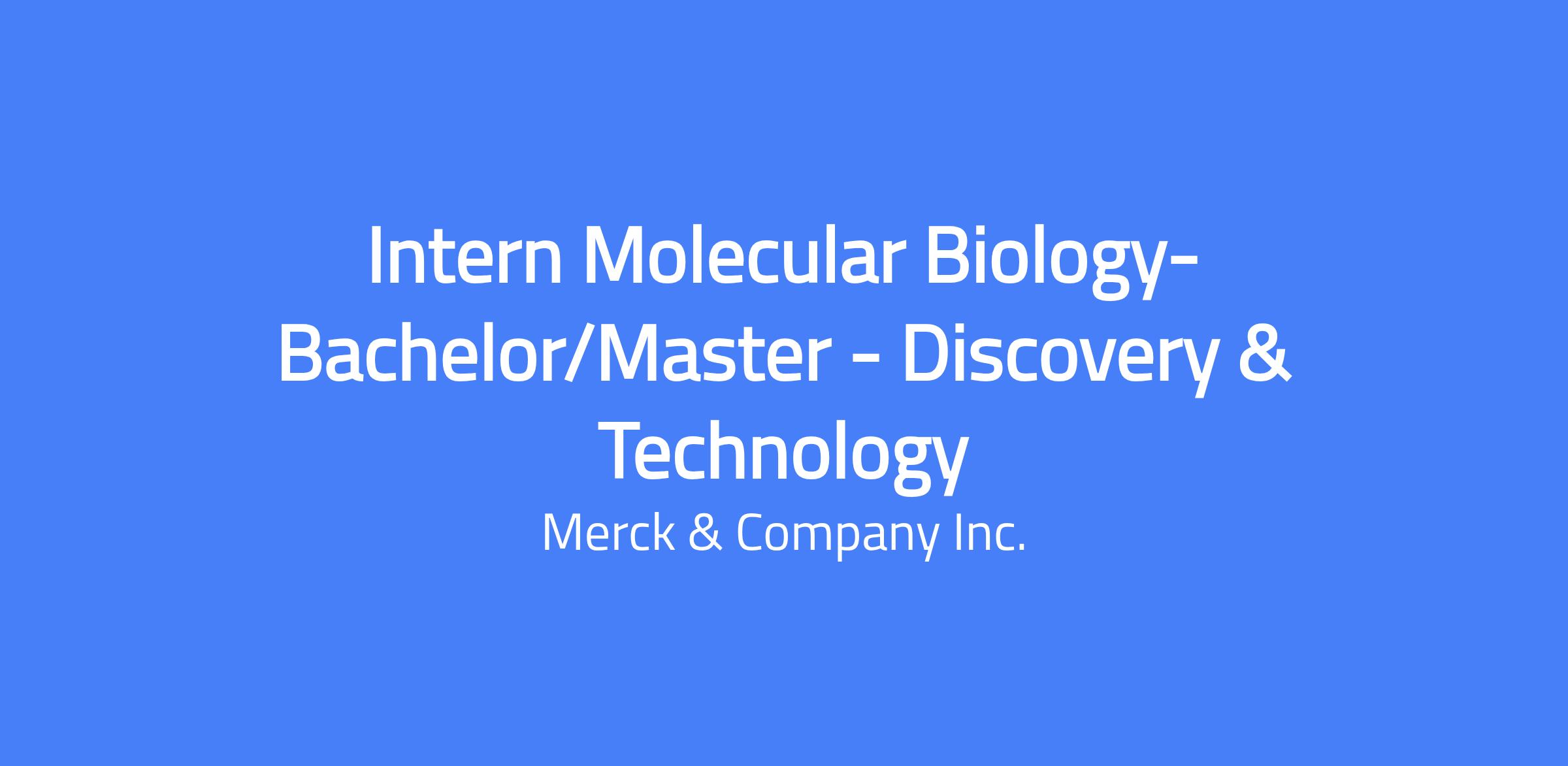 Job Description We are looking for a motivated final year bachelor or master student! Do you want to know what it's like to be part of one of the largest multinational companies in the pharmaceutical industry? We offer an internship opportunity within our Discovery & Technology (D&T) department where you will have the freedom and space for your own initiative. Intern Molecular Biology – Bachelor/Master – Discovery & Technology Welcome to our team The D&T department is an essential hub in our organization. This department is focused on the early-stage research of vaccine technologies. The team consists of about 40 employees, all of whom have extensive knowledge and experience in different vaccine technology fields like microbiology, vaccine formulation, immunology, vaccine analysis, cell biology and virology. The team works closely with other departments within the company to achieve the stated goals. Your internship assignment As an intern, you will be responsible for optimizing the Baculovirus expression system by increasing antigen secretion. In the baculovirus expression system, many recombinant antigens accumulate intracellularly. By contrast, secreted proteins transit through the endoplasmic reticulum (ER) and Golgi apparatus, enabling improved folding and post‑translational modifications. To increase protein secretion, the focus of this internship assignment will be on improving antigen design and testing different signal peptides, adding fusion tags, co-express helper proteins and improve expression conditions like cell line selection, culture optimization and temperature control. Your responsibilities • DNA cloning, protein expression and cell culturing • Chemical and immunological analysis • Literature research and critical scientific thinking • Providing a fresh perspective to the department by sharing your opinion The described tasks form the basic package and will often be performed independently after a proper training and learning period. These tasks may be supplemented with other projects and/or tasks on your own initiative or at the request of the organization. What is required • A final year B.Sc or M.Sc student in the field of Life Sciences • Preferably, you are familiar with vaccines and bacteria • You are fluent in English, both written and verbal • You are available for a period of 6-9 months for 5 days a week What we offer Interning at our company means working together with your team towards health in an international work environment. As an intern, you will have the opportunity to work closely with experts and learn from them. In addition, we offer: • The chance to gain experience in the pharmaceutical industry • An opportunity to showcase yourself for potential opportunities after your internship period • A challenging and dynamic work environment with plenty of room for personal development and initiative • Good guidance from an experienced specialist • A gross monthly internship allowance of €500,- based on a 40-hour workweek Animal Health Division Our Animal Health Division is a trusted global leader in animal healthcare. We are committed to preserving and improving the health, well-being, and performance of animals and the people who care for them. As a global team of professionals, we work together to make a positive difference in animal care and the world's food chain. We also have a deep sense of responsibility towards our customers, consumers, animals, society, and our planet. By being dedicated to The Science of Healthier Animals®, we provide veterinarians, farmers, pet owners, and governments with one of the broadest ranges of animal health products, vaccines, and solutions and services for health management. Additionally, we deliver a comprehensive range of digitally connected identification, traceability, and monitoring products. We invest in dynamic and extensive R&D capabilities and a modern, global supply chain. We are present in more than 50 countries, and our products are available in approximately 15 NLINTERN Required Skills: Accountability, Analytical Problem Solving, Clinical Research, Communication, Data Analytics, Database Management, Data Entry, Data Visualization, Document Management, Health Economics, Microsoft Office, Office Applications, Process Improvements, Project Management, Reporting and Analysis, Technical Support, Technical Training, Workload Prioritization Preferred Skills: Current Employees apply HERE Current Contingent Workers apply HERE Search Firm Representatives Please Read Carefully Merck & Co., Inc., Rahway, NJ, USA, also known as Merck Sharp & Dohme LLC, Rahway, NJ, USA, does not accept unsolicited assistance from search firms for employment opportunities. All CVs / resumes submitted by search firms to any employee at our company without a valid written search agreement in place for this position will be deemed the sole property of our company. No fee will be paid in the event a candidate is hired by our company as a result of an agency referral where no pre-existing agreement is in place. Where agency agreements are in place, introductions are position specific. Please, no phone calls or emails. Employee Status: Intern/Co-op (Fixed Term) Relocation: VISA Sponsorship: Travel Requirements: Flexible Work Arrangements: Not Applicable Shift: Valid Driving License: Hazardous Material(s): Job Posting End Date: 04/30/2026 *A job posting is effective until 11:59:59PM on the day BEFORE the listed job posting end date. Please ensure you apply to a job posting no later than the day BEFORE the job posting end date. Our company is a global health care leader with a diversified portfolio of prescription medicines, vaccines and animal health products. The difference between potential and achievement lies in the spark that fuels innovation and inventiveness; this is the space where we have codified our legacy for over a century. Our success is backed by ethical integrity, forward momentum, and an inspi