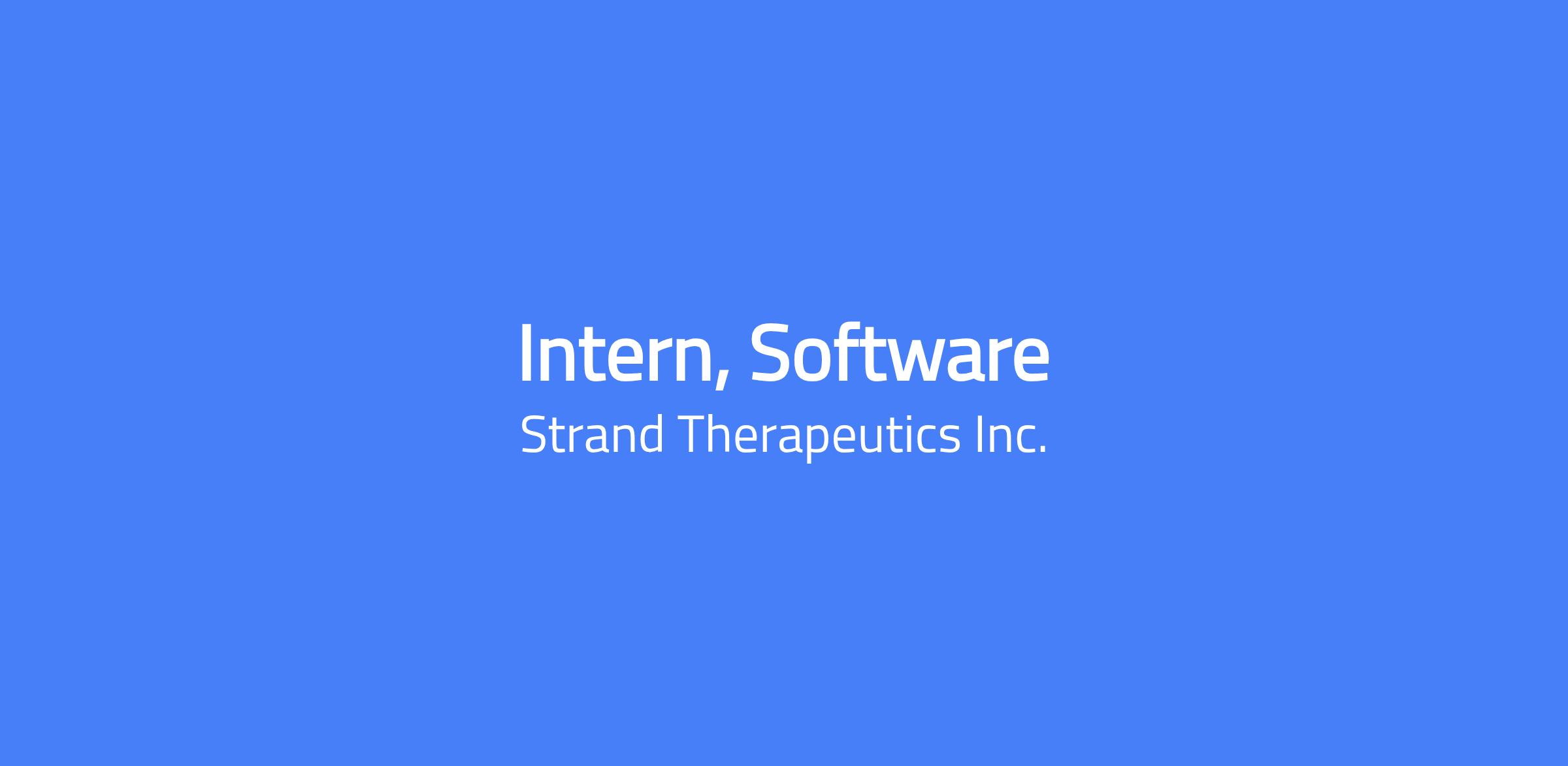 We are looking for an Intern, Software to join the Computational Biology team at Strand Therapeutics. The incoming candidate will work closely with both the computational biology team and experimental teams at Strand to build software tools to streamline and empower R&D. The candidate will be expected to work in an innovative, fast-paced, cross-collaborative biotech environment.