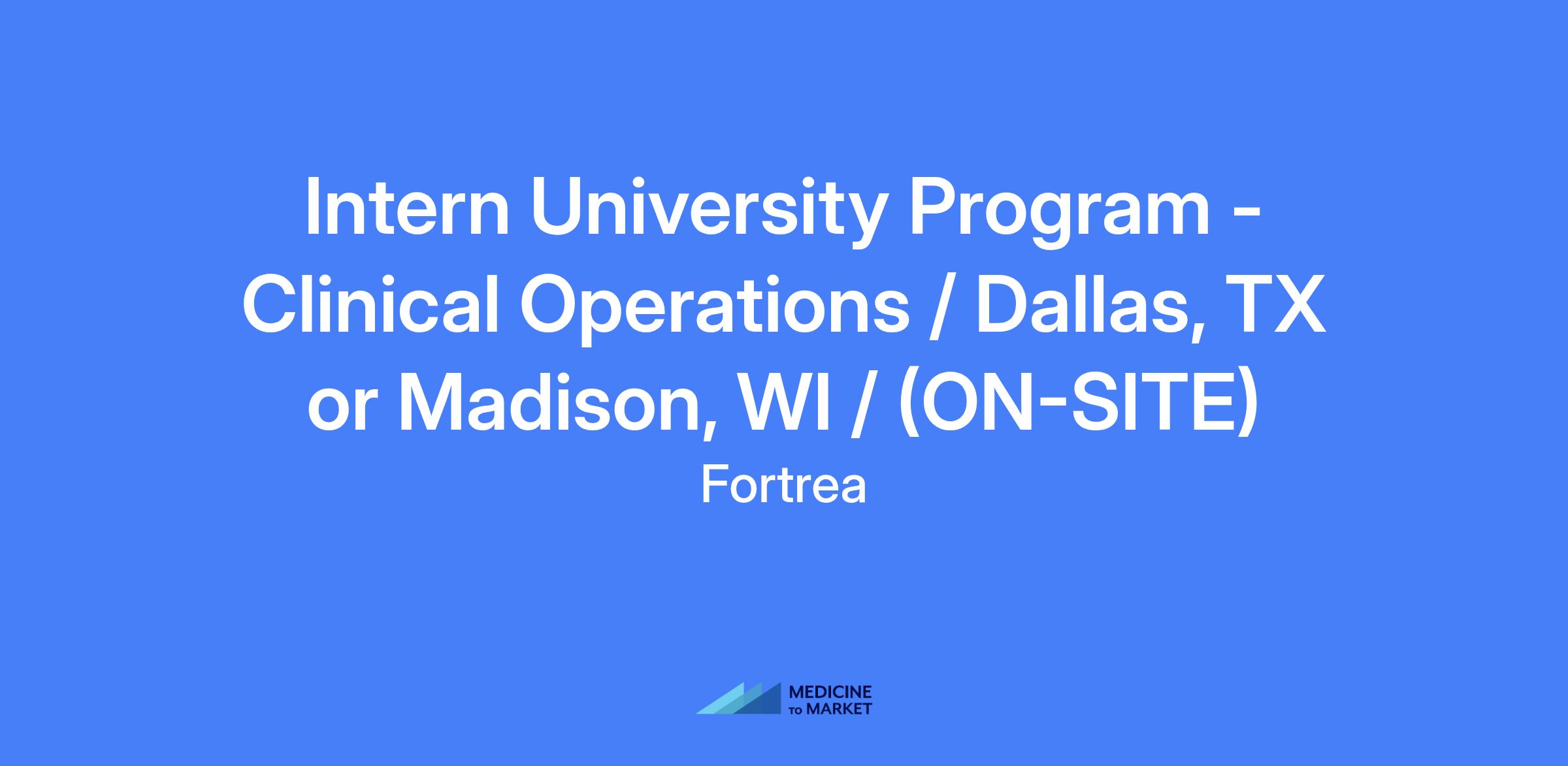 Intern University Program - Clinical Operations / Dallas, TX or Madison, WI / (ON-SITE)