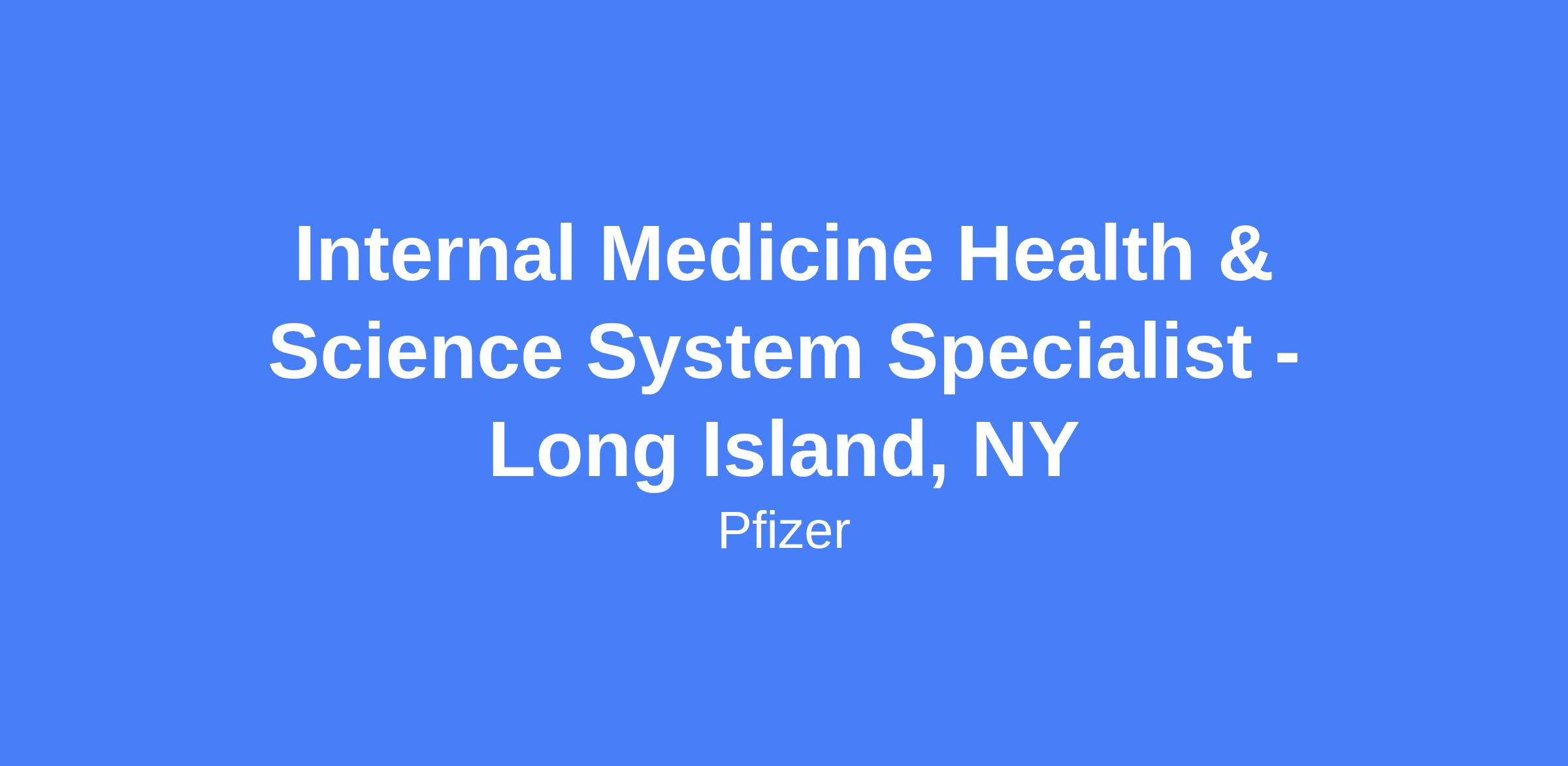 Internal Medicine Health & Science System Specialist — Long Island, NY. Relocation assistance may be available based on business needs and/or eligibility.