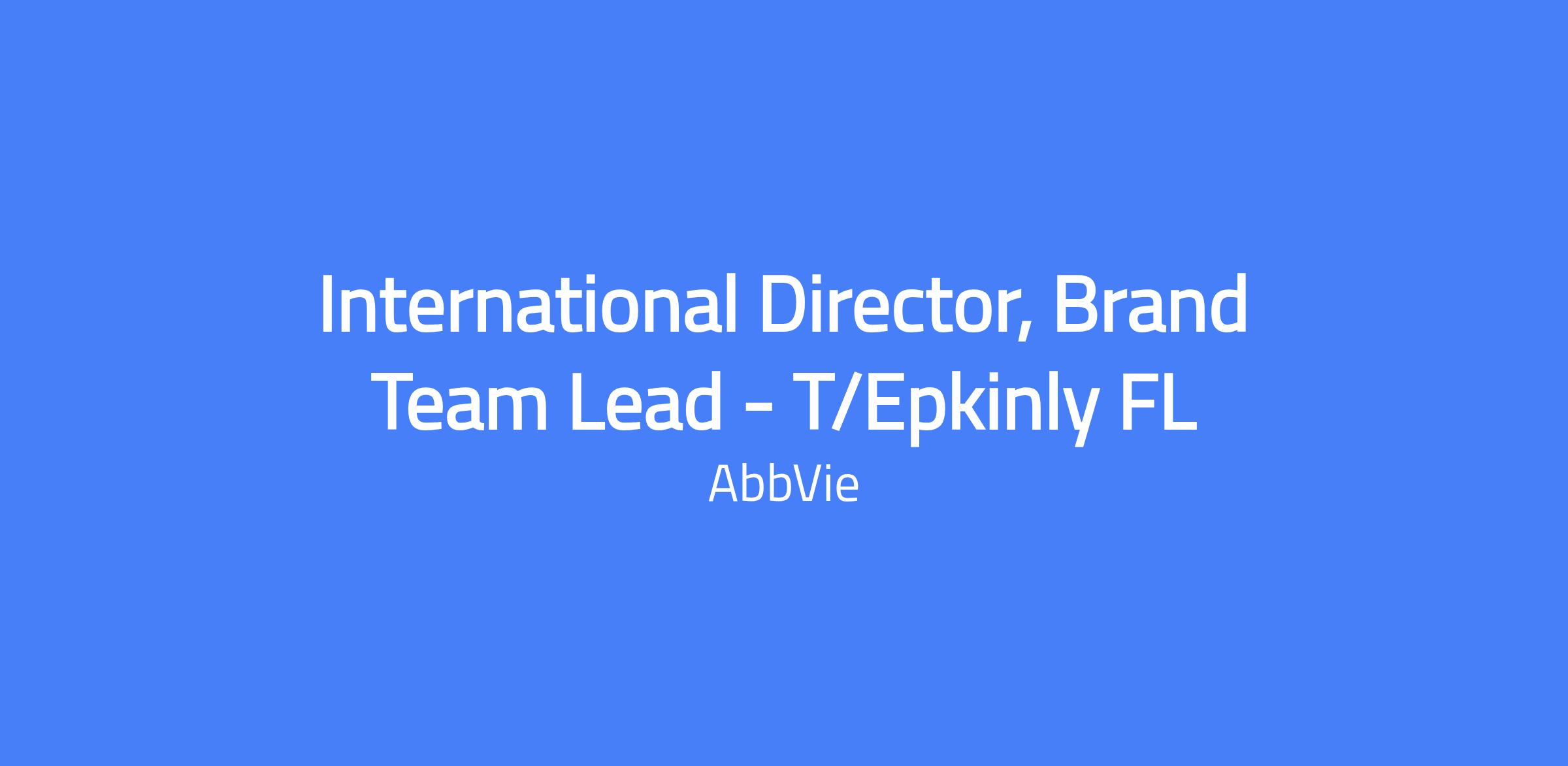 International Director, Brand Team Lead, T/Epkinly FL. Responsible for stewarding the global brand strategy and execution across international markets, partnering with affiliates, the US team, and the Genmab alliance partner. Leads the Global Alliance Brand Plan (on-market and pipeline indications), guides marketing vision and resource investment, and drives launches and portfolio strategy across all lines of treatment. Manages three direct reports and aligns cross-functional stakeholders to achieve business objectives.