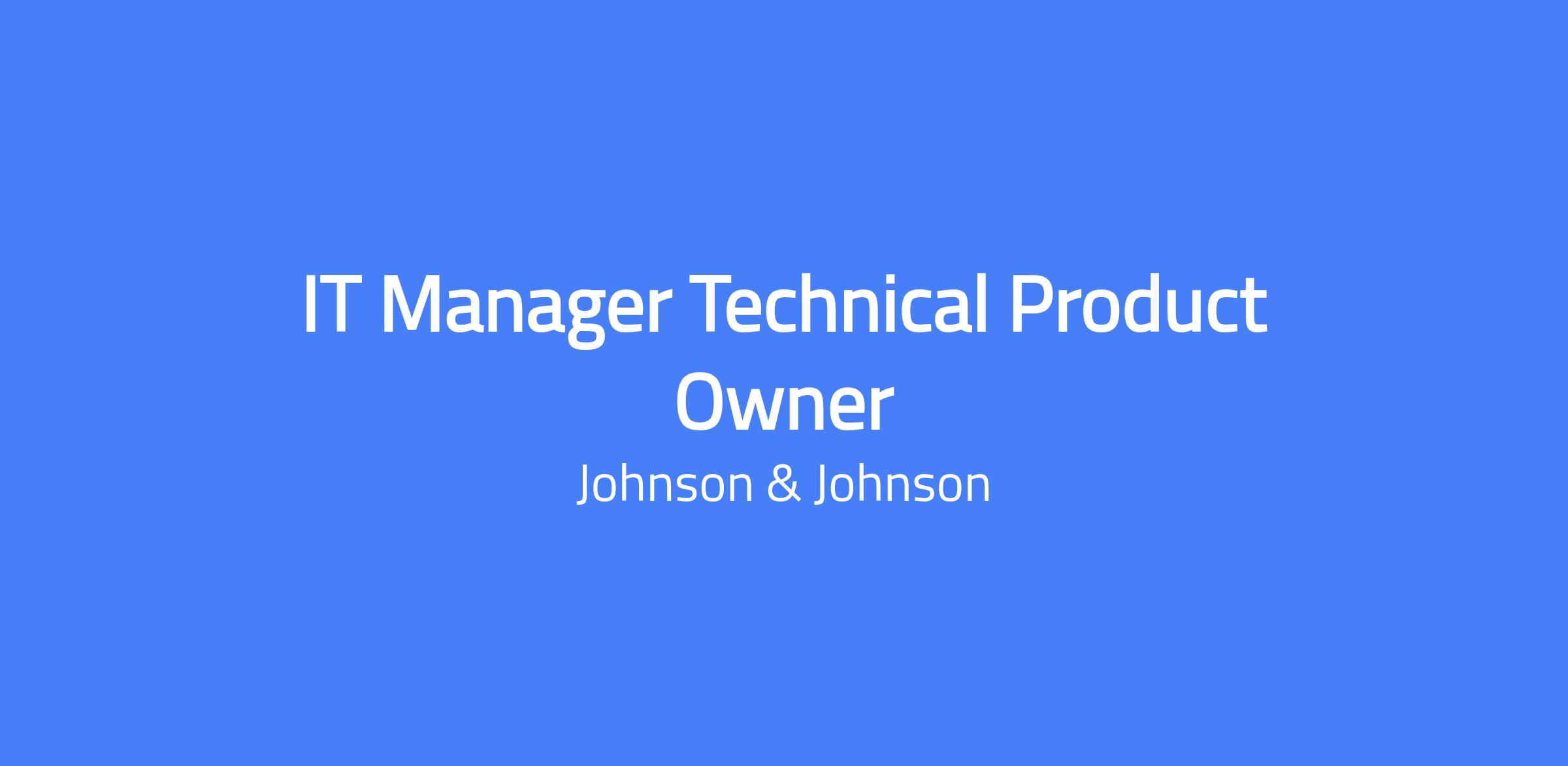 IT Manager, Technical Product Owner (TPO) to shape, deliver, and support the Health Care Compliance (HCC) product portfolio, vision, and roadmap located in New Brunswick, NJ.