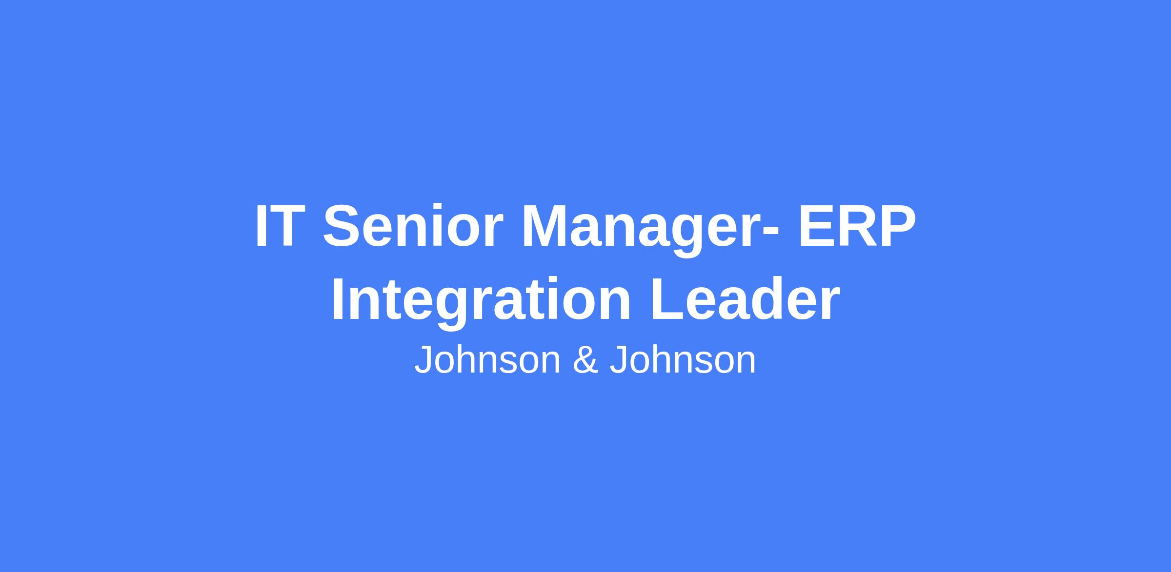 IT Senior Manager- ERP Integration Leader. Location: Raritan, NJ. Lead SAP S/4HANA ERP integration as part of the Digital Transformation program, delivering a reliable, high-quality ERP solution for the Supply Chain. Responsible for end-to-end ERP deployments, governance, budgets, and compliance with SDLC, SOX, GxP, and regulatory requirements. Coordinate with business and technology stakeholders, vendors, and process owners, and ensure hardware/infrastructure readiness at site locations. Travel to domestic and international locations is required (25%).