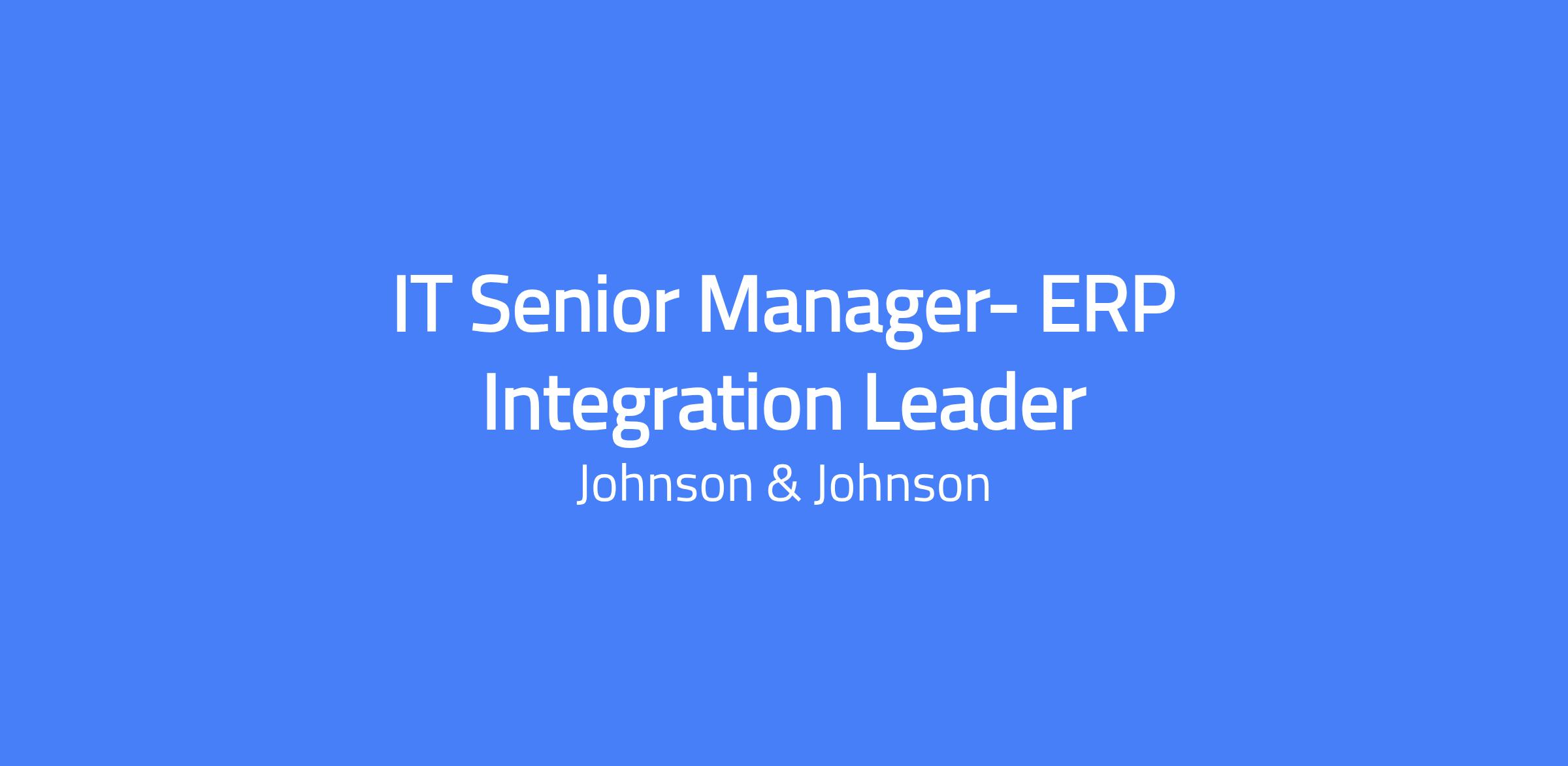IT Senior Manager- ERP Integration Leader. Location: Raritan, NJ. Lead SAP S/4HANA ERP integration as part of the Digital Transformation program, delivering a reliable, high-quality ERP solution for the Supply Chain. Responsible for end-to-end ERP deployments, governance, budgets, and compliance with SDLC, SOX, GxP, and regulatory requirements. Coordinate with business and technology stakeholders, vendors, and process owners, and ensure hardware/infrastructure readiness at site locations. Travel to domestic and international locations is required (25%).