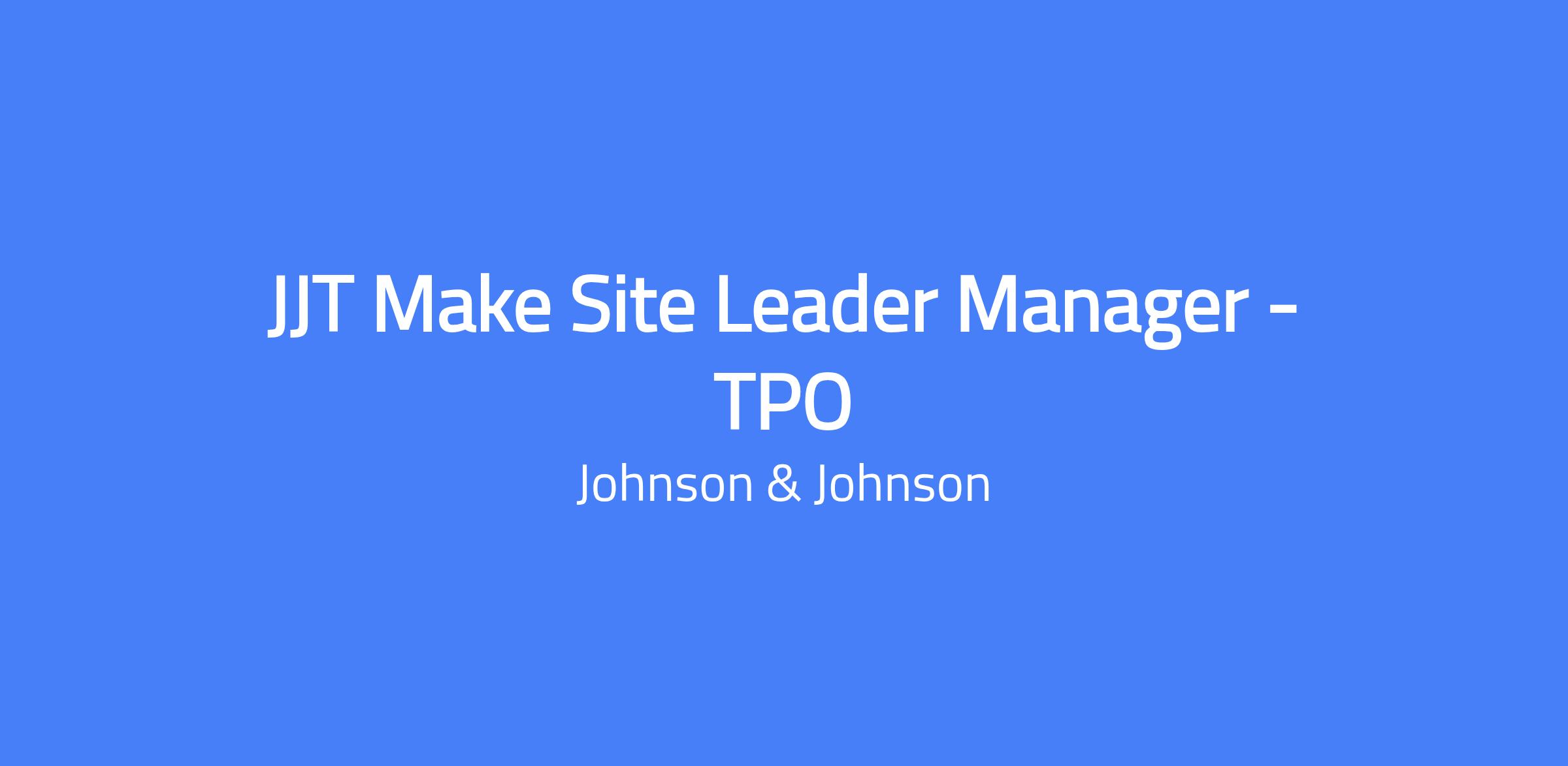 JJT Make Site Leader Manager - TPO leads the vision, prioritization, and implementation of technical product owner features for JJT MAKE products at the Aesthetics and Reconstruction (A&R) Manufacturing Plant in Irving, TX. The role serves as the primary JJT partner to the Plant Leadership Team, driving digital transformation in a high-visibility environment and coordinating the Total Cost of Ownership (TCO) for site JJT Operations while informing portfolio and investment prioritization. In collaboration with J&J Technology and Business Leaders, the role identifies and prioritizes solutions and leads their consistent implementation across the business, aligning with the overall J&J MedTech strategy.