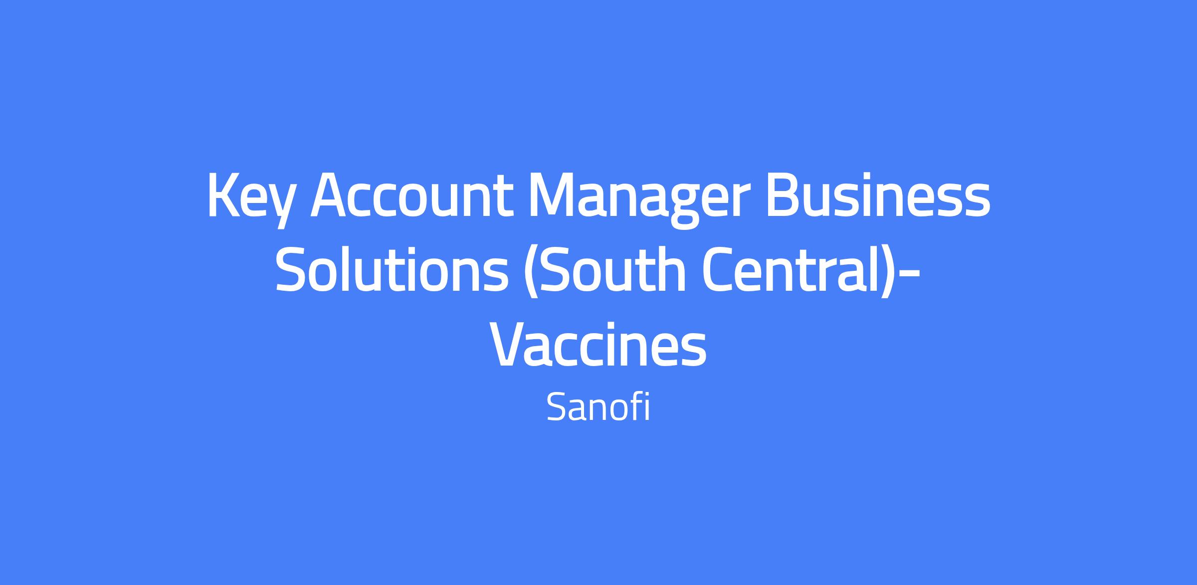 Key Account Manager Business Solutions (South Central) β Vaccines. Travel up to 75% of the time to customers, conventions, training, and other internal meetings. Location: Remote/Field. The primary goal of the Account Manager (AM) is to achieve and exceed financial goals and quotas established for the assigned accounts and business segments, translating product and business segment value proposition strategies into specific account plans that drive the achievement of financial goals. The AM identifies business opportunities, develops business partnerships, provides input into decision-making, and implements contracting strategies and guidelines of VaxServe Account Management. The AM serves as the focal point in communications between Account Management and internal and external customers, developing a territory business plan with strategic objectives for each health system in their territory, and partnering with others within the Sanofi Group to implement objectives. Geographical area of responsibility includes Texas, Oklahoma, Louisiana, Arkansas, Florida and Mississippi.