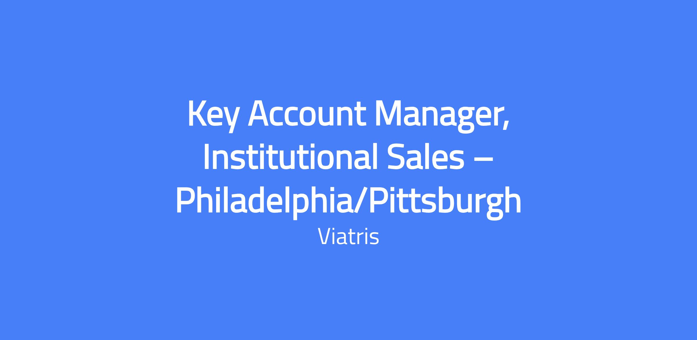 Key Account Manager, Institutional Sales β Philadelphia/Pittsburgh. This role supports Viatris in managing a portfolio of Generic Injectables, Unit Dose, and select brands across North America, focusing on the Philadelphia/Pittsburgh region and related markets. Responsibilities include contract management, pricing, inventory coordination with wholesalers and hospitals, and cross-functional collaboration to optimize sales performance and compliance.