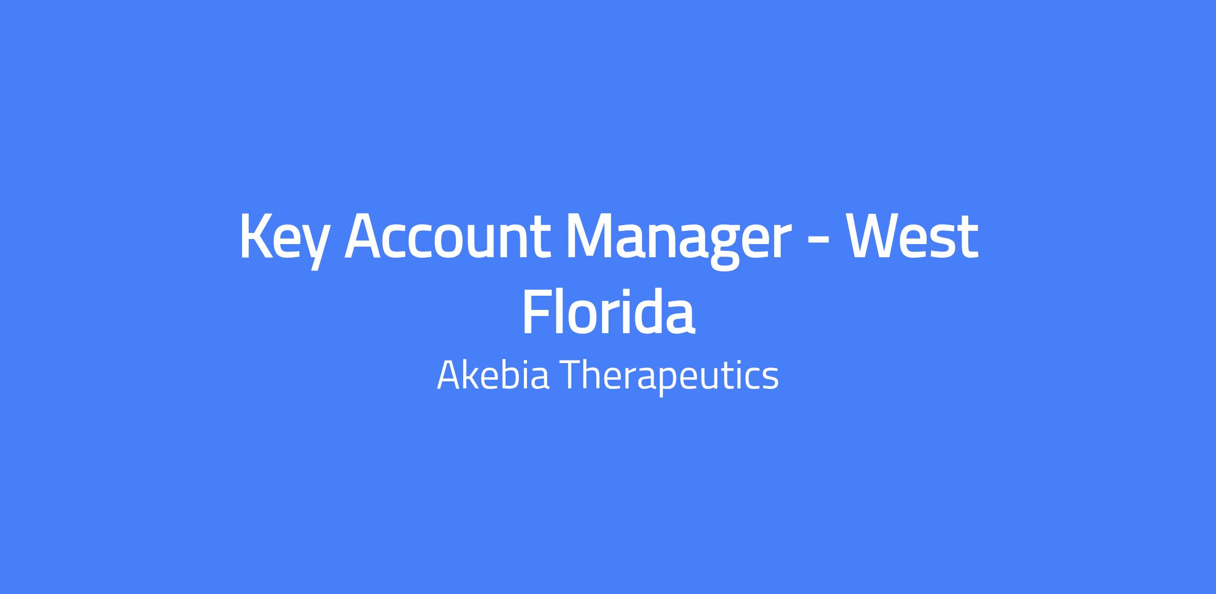 The Key Account Manager (KAM) is a field-based, remote role responsible for representing Akebia products to physicians and healthcare professionals and performing total territory account management within the West Florida geography. The KAM builds consultative relationships with Renal Healthcare Providers and provides clinical and economic knowledge of Akebia products to key stakeholders. They will develop a comprehensive, actionable territory business plan to achieve and exceed annual sales goals, supported by analytics, and provide account management support to nephrology accounts within the defined geography.