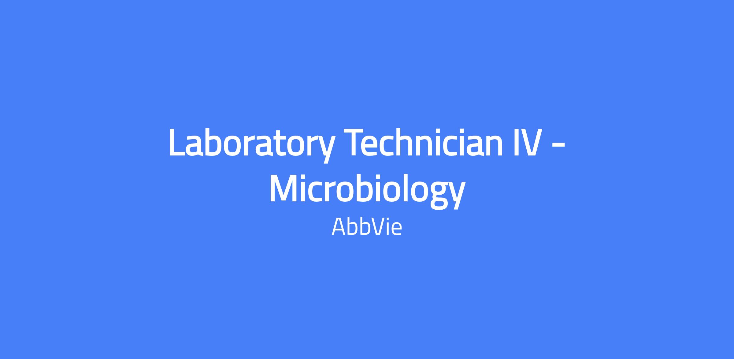 Laboratory Technician IV - Microbiology performs microbiological and chemical testing across water, raw materials, in-process samples, and final product following specifications. They provide support in method transfer, equipment/instrument qualification, and process validation, and ensure compliance with cGMP and GLP.