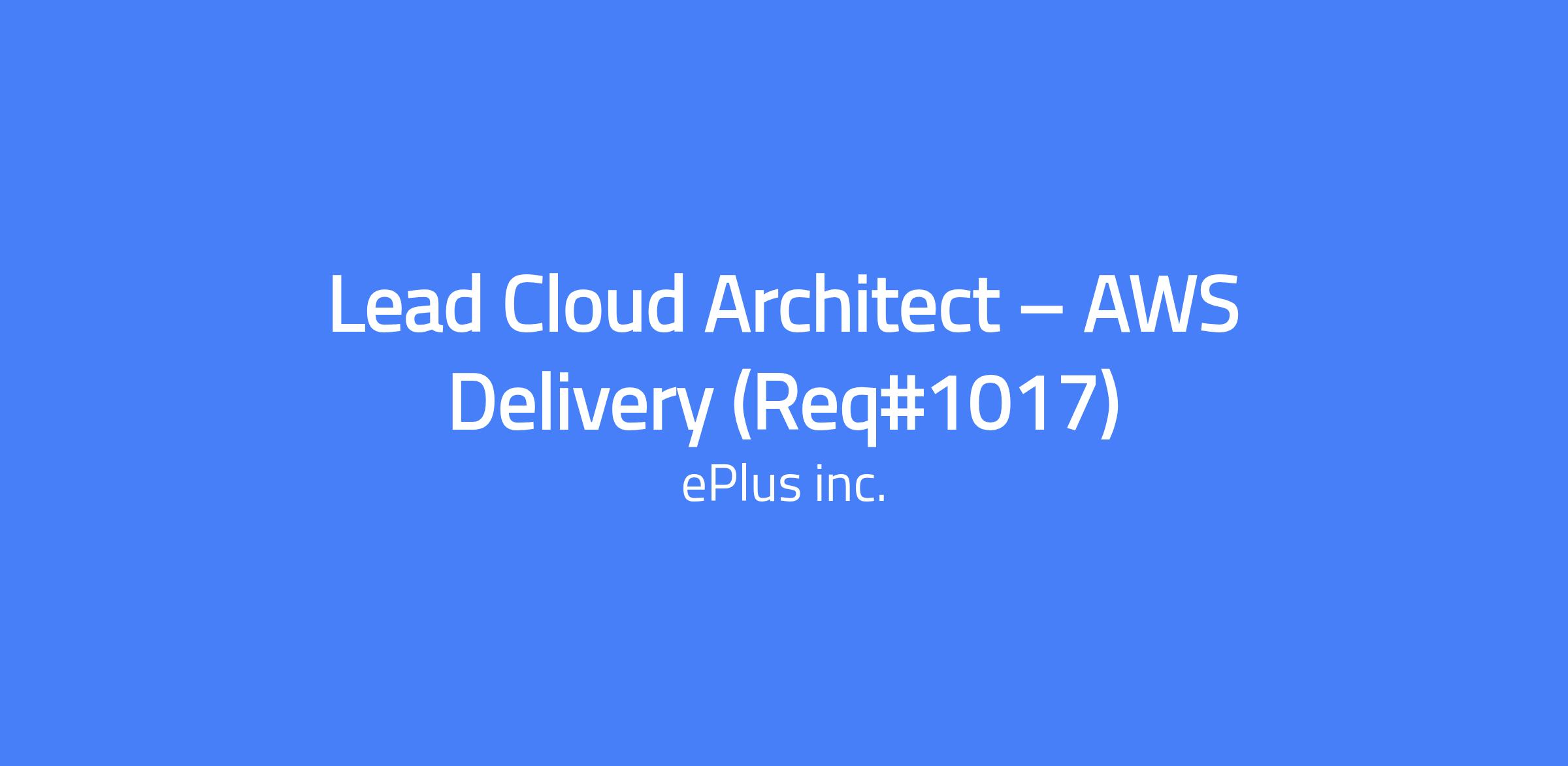 As a Lead Cloud Architect – AWS Delivery at ePlus, you’ll be at the forefront of innovation—guiding a talented delivery team of engineers in designing and deploying cutting-edge, AWS solutions. You’ll architect and implement scalable, secure, and resilient infrastructures and applications, ensuring every solution aligns seamlessly with our clients’ business goals and technical needs. This is a high-impact role where your leadership and technical vision will shape the future of digital transformation for some of the most forward-thinking organizations. This role operates in a client-facing consulting environment. Architects are expected to balance technical excellence with delivery timelines and customer expectations.