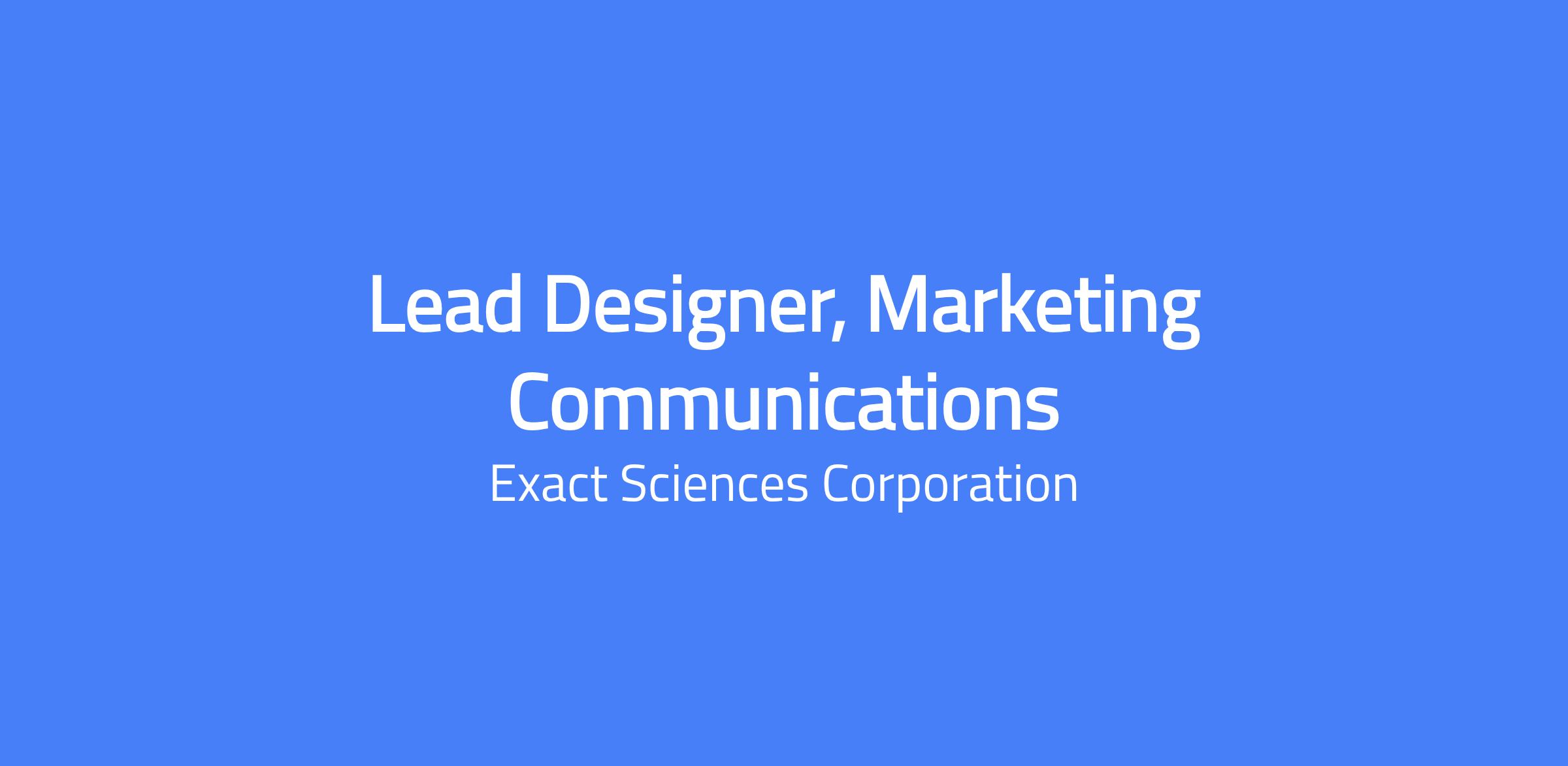 Help us change lives At Exact Sciences, weâre helping change how the world prevents, detects and guides treatment for cancer. We give patients and clinicians the clarity needed to make confident decisions when they matter most. Join our team to find a purpose-driven career, an inclusive culture, and robust benefits to support your life while youâre working to help others. Position Overview This position may be site-based or remote in Chicago, Boston, San Diego or Minneapolis. Exact Scienceâs Customer Experience (CX) team is responsible for defining, driving, and delivering innovative, immersive, memorable customer-centric journeys for all our customers, across all channels. These journeys are grouped by Customer Types (e.g., Patient, Provider) and further categorized into a set of Experiences (e.g., Understand Risks & Complete Screening, Confirm Diagnosis). Each Experience has a set of specific, measurable Objectives and Key Results (OKRs) that the overall team is accountable to fulfill. As a Lead Designer, Marketing Communications, you will help shape, define, and drive high-impact design initiatives across digital, product, and marketing platforms. You will blend systems thinking with hands-on execution, bringing structure to complex problems and elevating the craft of design through thoughtful, scalable, human-centered solutions. Youâll lead by example, guiding teams toward clarity, consistency, and innovation. You will guide experience vision, interaction patterns, and system-level design across journeys and touchpoints, helping to unify design efforts across web, mobile, physical, and hybrid platforms. Your design work is grounded in deep empathy, curiosity, and a strong understanding of user mindsets, behaviors, and expectations. You design with people at the center, delivering solutions that reduce friction, build trust, and empower patients and providers to make confident, informed decisions. You excel at balancing the strategic and the tactical, able to see the big picture of experience ecosystems while refining the details of interaction design, flows, and component-level polish. You bring structure to ambiguity, elevate the role of design in cross-functional work, and advocate for excellence at every level of execution. Your approach is rooted in systems thinking, iterative testing, and collaborative problem-solving, always with an eye toward both business outcomes and human impact. As a hands-on, proactive, collaborative design leader, youâll work closely with Product Managers, Engineers, Researchers, Content Strategists, and Legal, Marketing, and Medical partners. Youâll help teams navigate complexity, compliance, and competing priorities, driving forward experience strategies that are scalable, accessible, and compliant. Youâll shape the end-to-end design process and help teams deliver solutions that balance innovation with feasibility. As a craft leader and mentor, youâll model design excellence and help build a culture of feedback, continuous learning, and shared ownership. Youâll support junior and mid-level designers in growing their skills and craft while contributing directly to high-impact work. You know how to guide vision, define process, manage stakeholders, and roll up your sleeves to contribute at every level, ensuring quality delivery. You have a strong track record of delivering thoughtful, inclusive, and high-quality digital experiences in complex environments. Youâre able to balance priorities and understand the impact of key decisions. Your leadership empowers cross-functional teams to execute design thatâs not only effective but deeply human. You should be prepared to share a portfolio that demonstrates your ability to simplify complexity, bring strategy to life through experience, and create work that resonates with diverse audiences. Your work reflects a deep commitment to solving the right problems, driving meaningful outcomes at scale, and facilitating thoughtful interactions. Essential Duties Include, but are not limited to, the following: Independently lead and facilitate active collaboration with strategists, researchers, product leaders, legal, regulatory, medical, labs, and the respective Experience Design team members to produce deliverables that scale across journeys and platforms, with minimal guidance. Support a team of designers, providing informal coaching, feedback, and direction to help them do their best work on a project. Research and stay up-to-date to help support the adoption of the enterprise-wide design best- practices, standards, principles, and the usage of AI into your daily practice. Develop advanced prototypes and animations or define motion characteristics. Advocate for the incorporation of user research into the experience's UX vision, provide strategic rigor and thoughtfulness throughout the creation of products and experiences, from vision and conception to launch and optimization/governance - possess the knowledge and passion to articulate it clearly, confidently, concisely, and compellingly across audiences. Evolve and champion our design system to ensure that it is driving efficiencies and is tailored to the respective audience needs. Serve as a subject-matter expert in all things design and help lead both partners and peers alike to help think how design drives utility and inspires, equally. Remove impediments and ensure delivery of the overall experience vision & results aligned to OKRs. Building and maintaining collaborative relationships with senior leadership and other departments (e.g., Marketing) will also be required. Research and stay up-to-date to help lead the adaption of the enterprise-wide UX best practices, standards, principles, and design thinking processes for use by the respective UX, Product, and Development teams; serve as an advocate for these standards, principles, processes. Create systems and strategies that help designers thrive. Lead the use of design thinking, storytelling, and conce